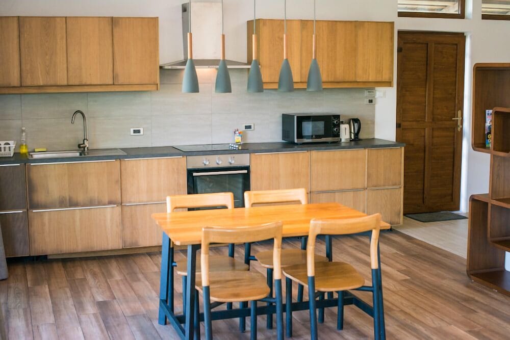 Charmant petit hotel dans un superbe jardin. Tout est fait pour le confort des hôtes. Pret gratuit de paddles, kayaks et masques de plongee.