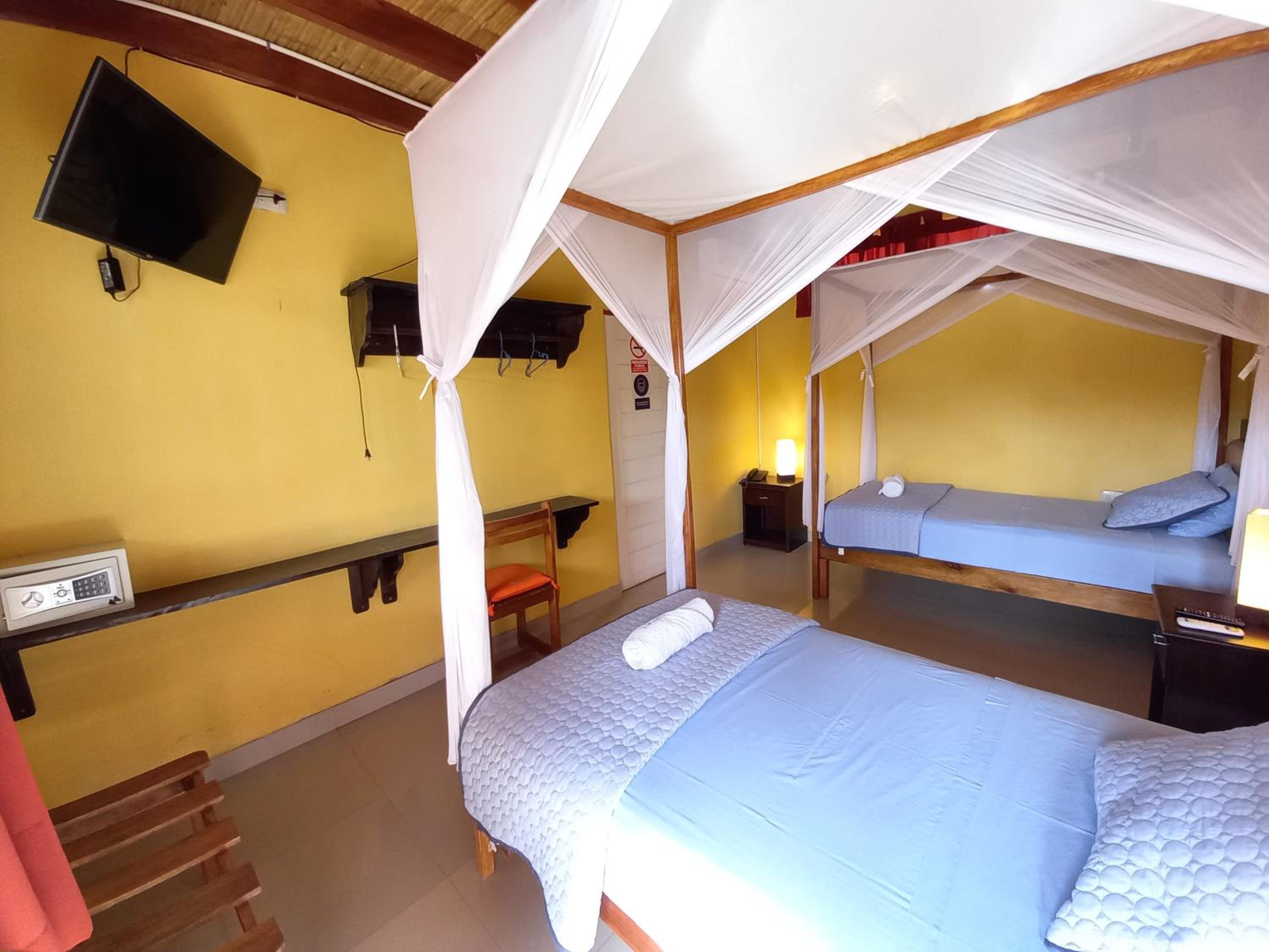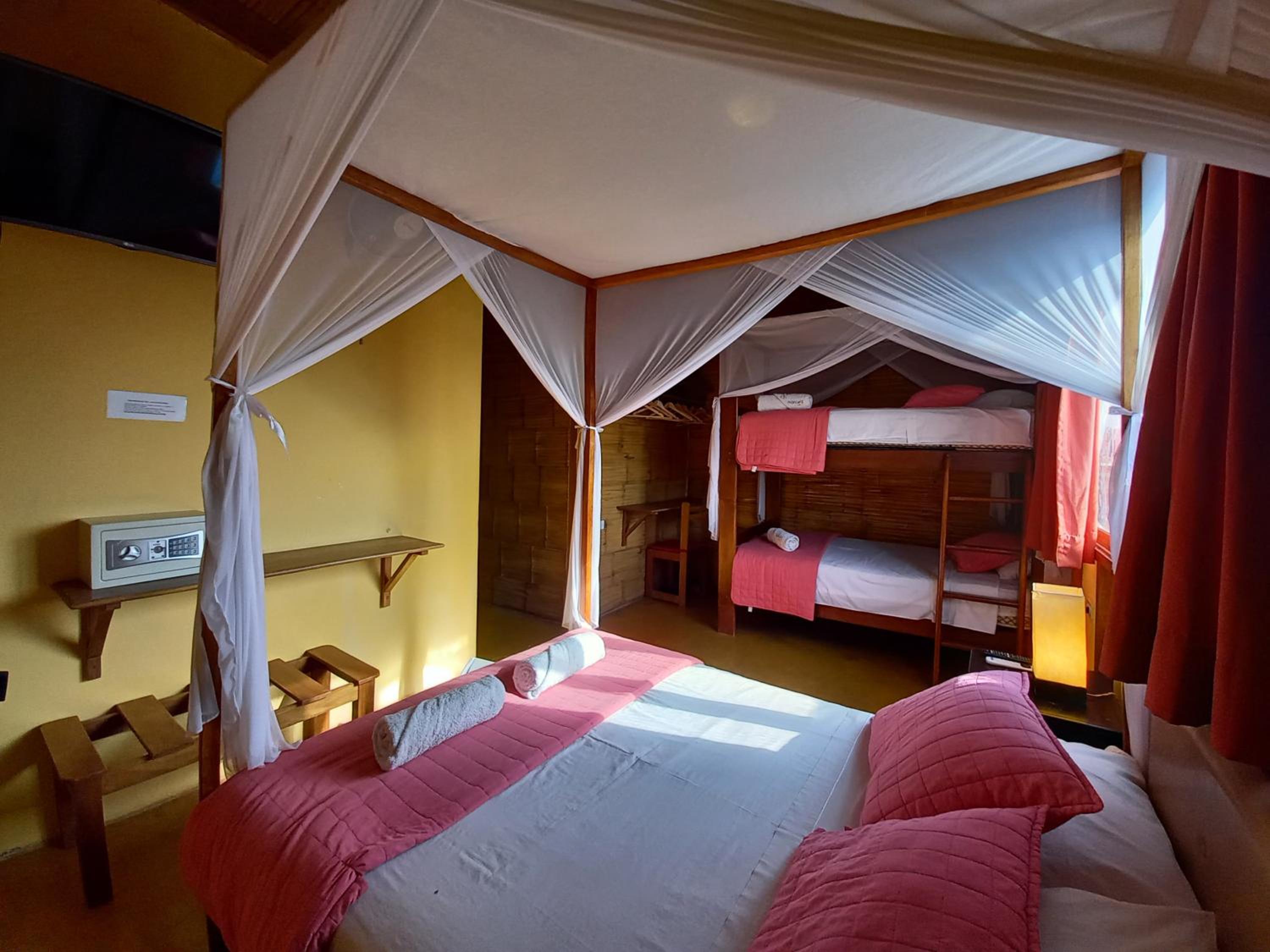 Cercano a la playa, área tranquila. El interior de hotel es bonito y agradable. Las habitaciones son cómodas y cuentan con mosquiteros, además de una hamaca y un colgador. Nos encantó.