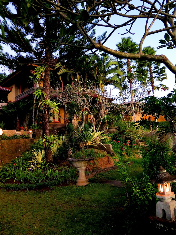 Indulge in international cuisine at Lihat Sawah Restaurant while enjoying a picturesque garden view.