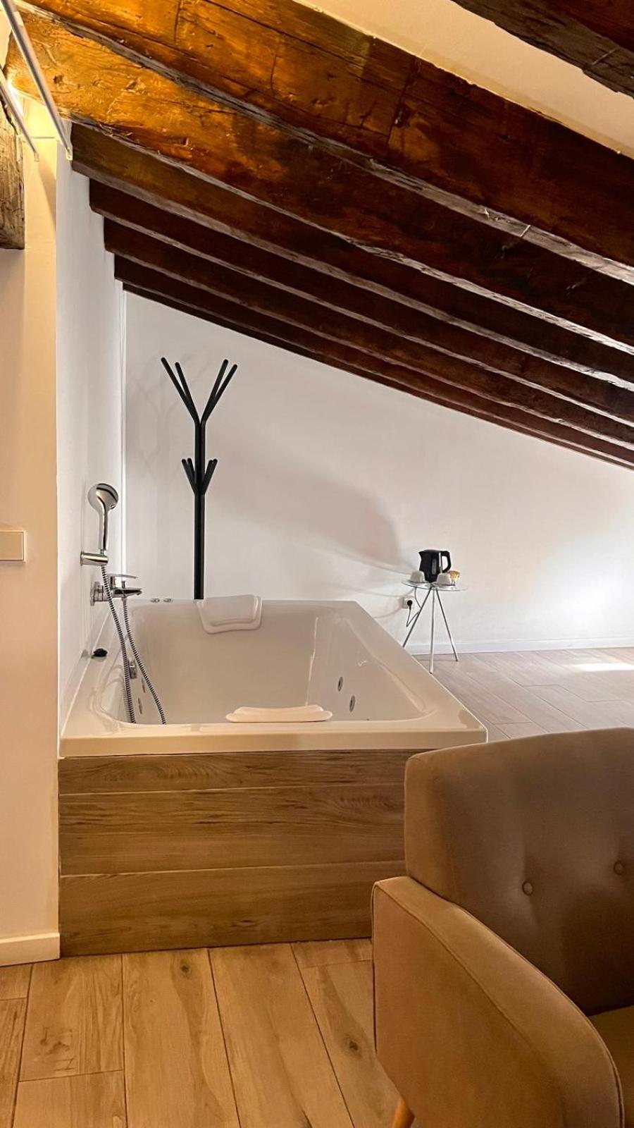 The hotel is in an excellent location. The cathedral, bars and restaurants are all on the doorstep. We stayed in the top room which has low ceilings but great facilities - a generous shower room, huge jacuzzi bath, sofa and roof terrace. It was clean and comfortable. The room was great value for the facilities.