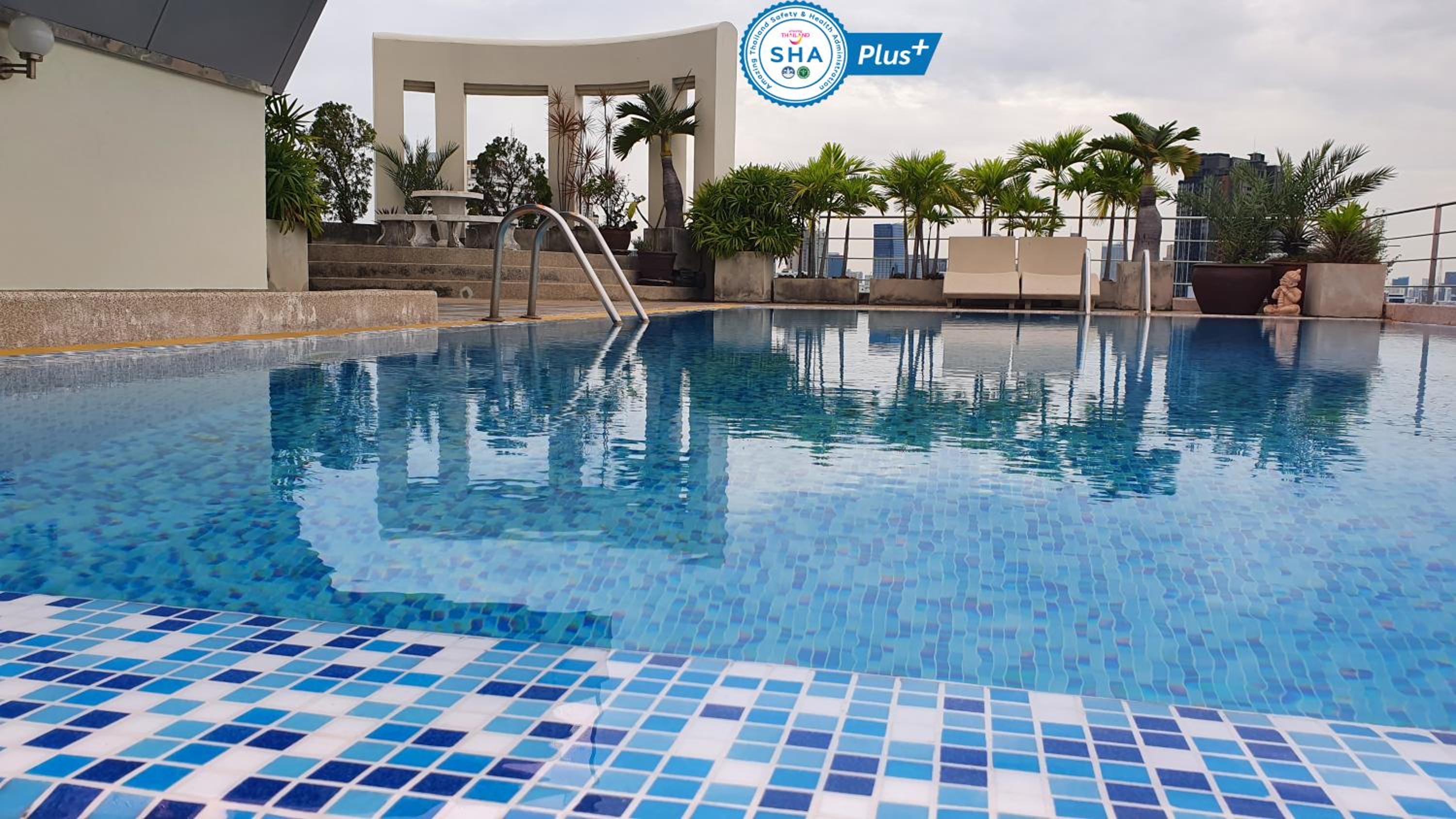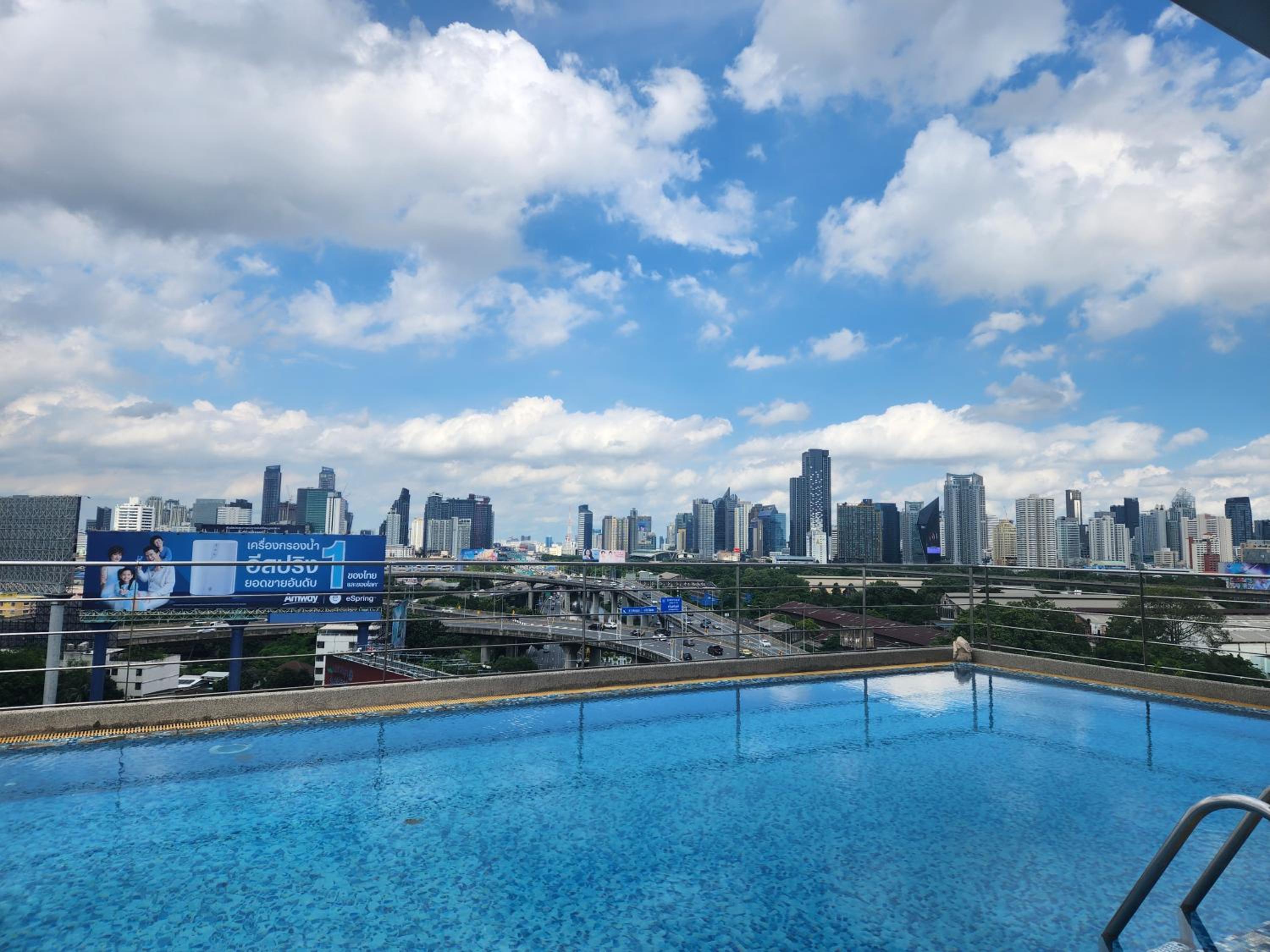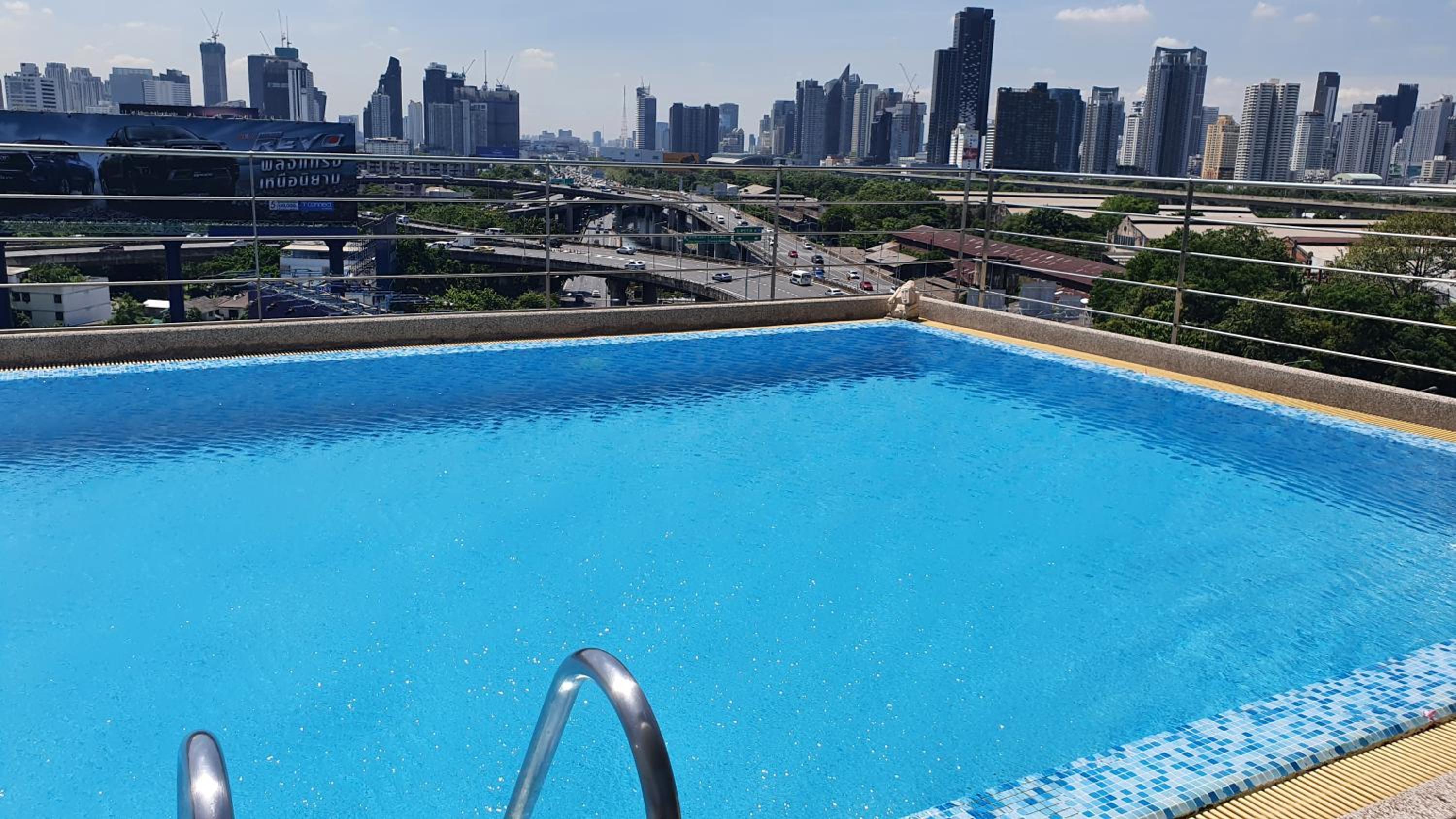 La piscine du 13eme étage assez fraîche mais une vue incroyable sur Bangkok, assez bruyant, rideaux pas assez couvrant pour la lumière du jour, le sommier assez ancien et télé non fonctionnel ( un adaptateur serait un plus )