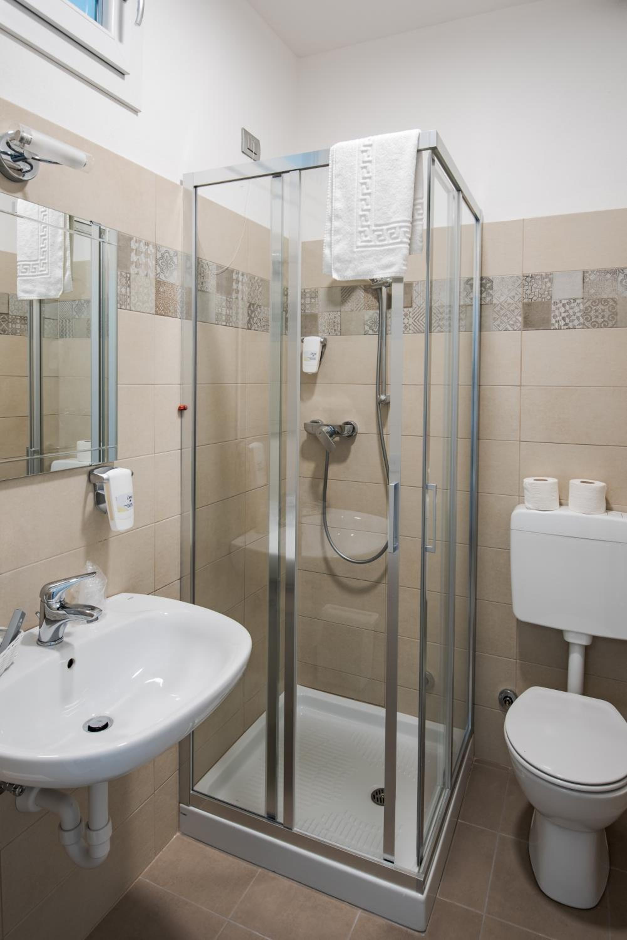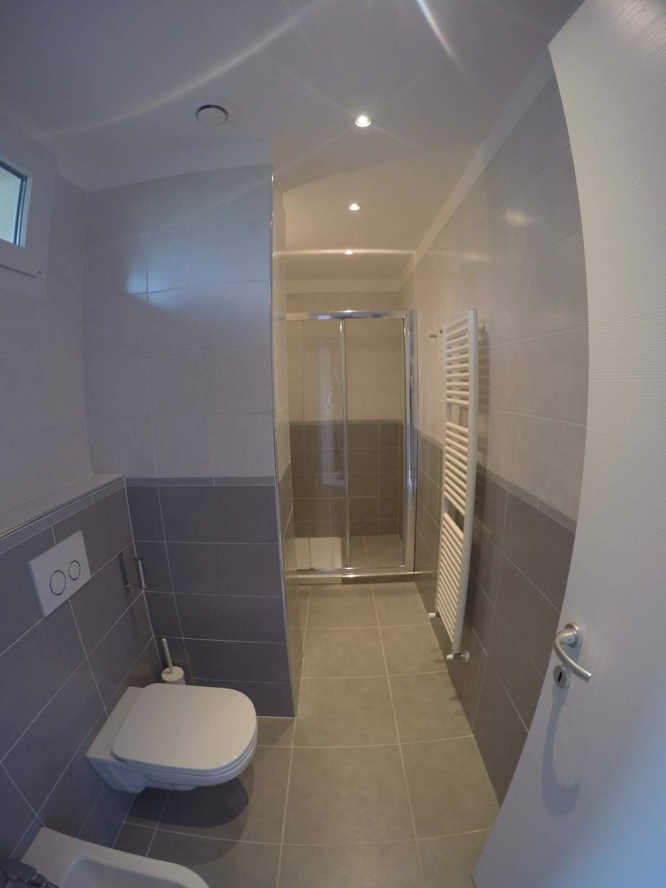 Der Haartrockner war defekt und die Dusche war einseitig offen so dass es nach draussen spritzte