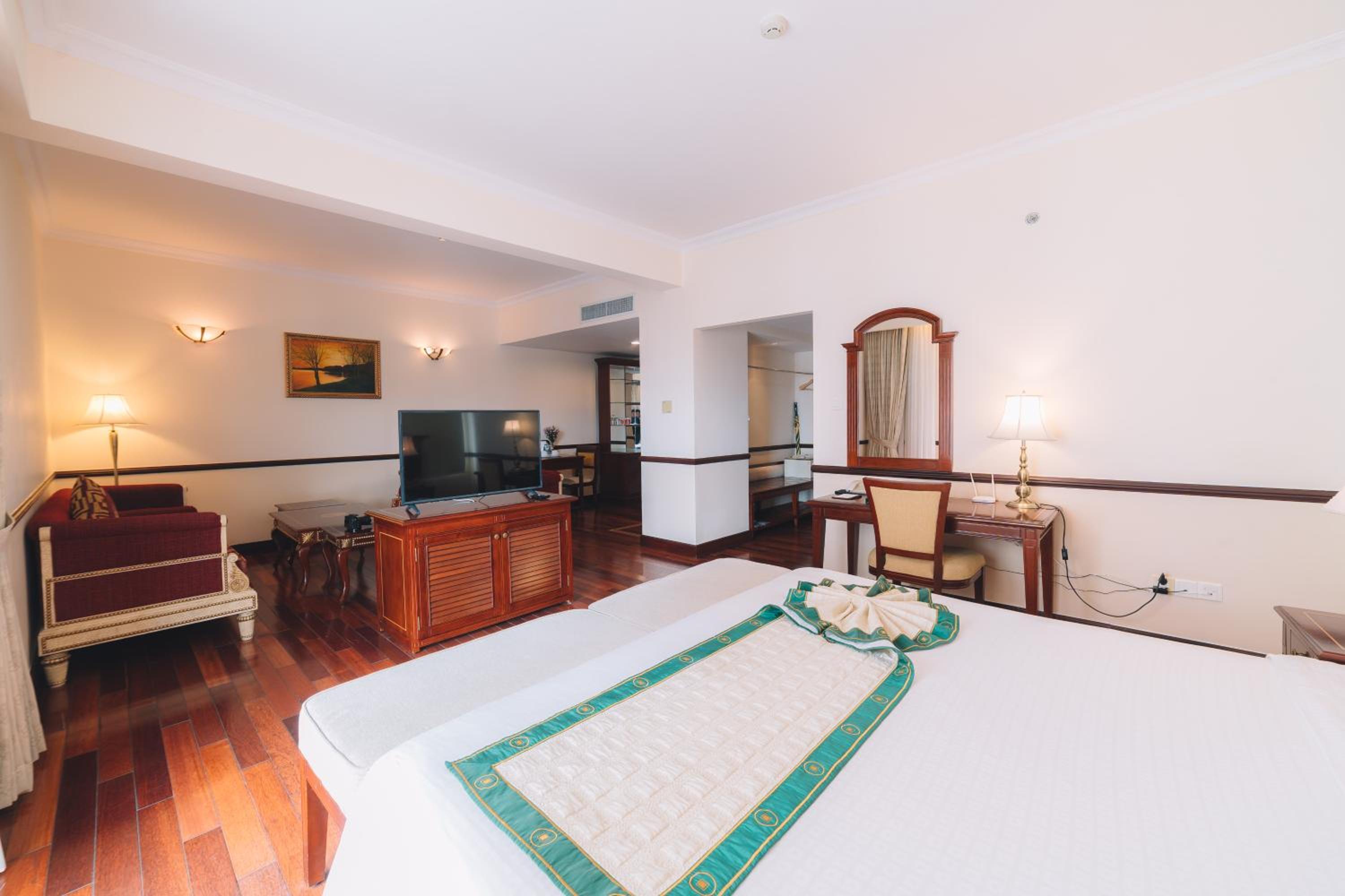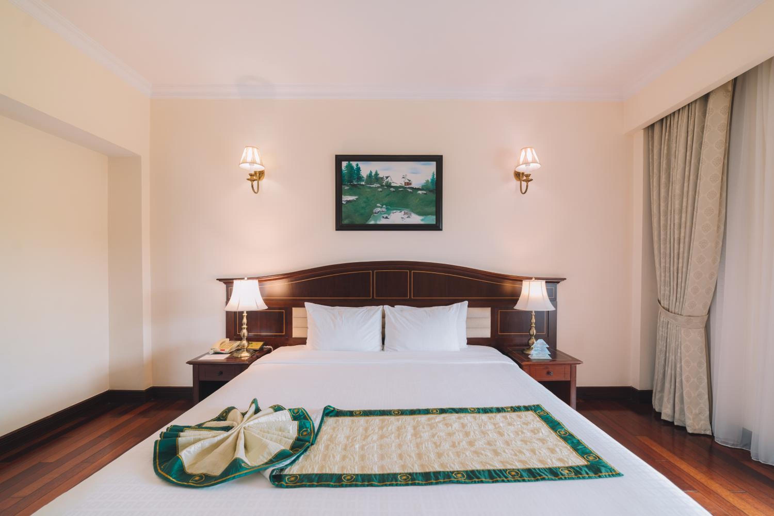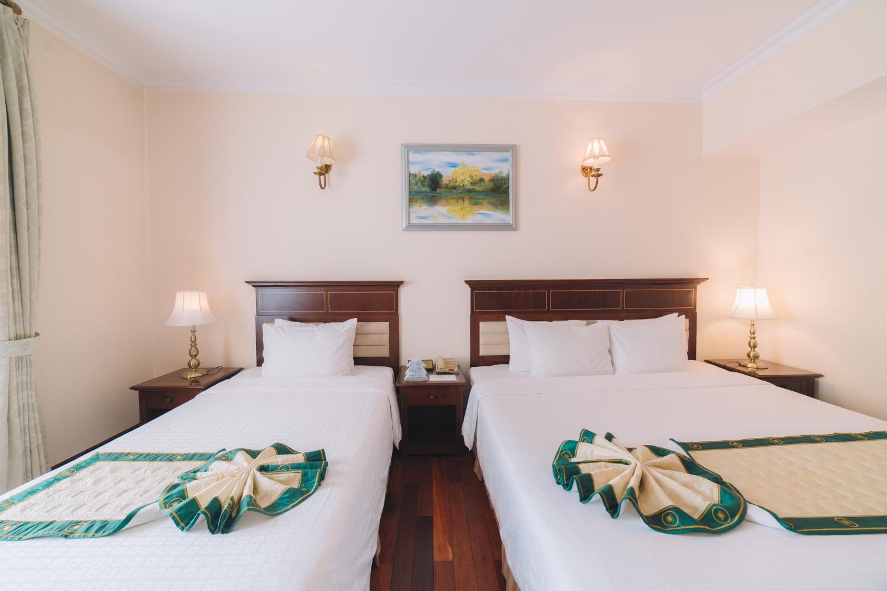 Elegantly furnished rooms with modern amenities and comfortable bedding ensure a relaxing stay at Saigon Dalat Hotel. Enjoy the convenience of air-conditioning, a personal safe, and a flat-screen TV in each room, along with a marble bathroom for added luxury.
