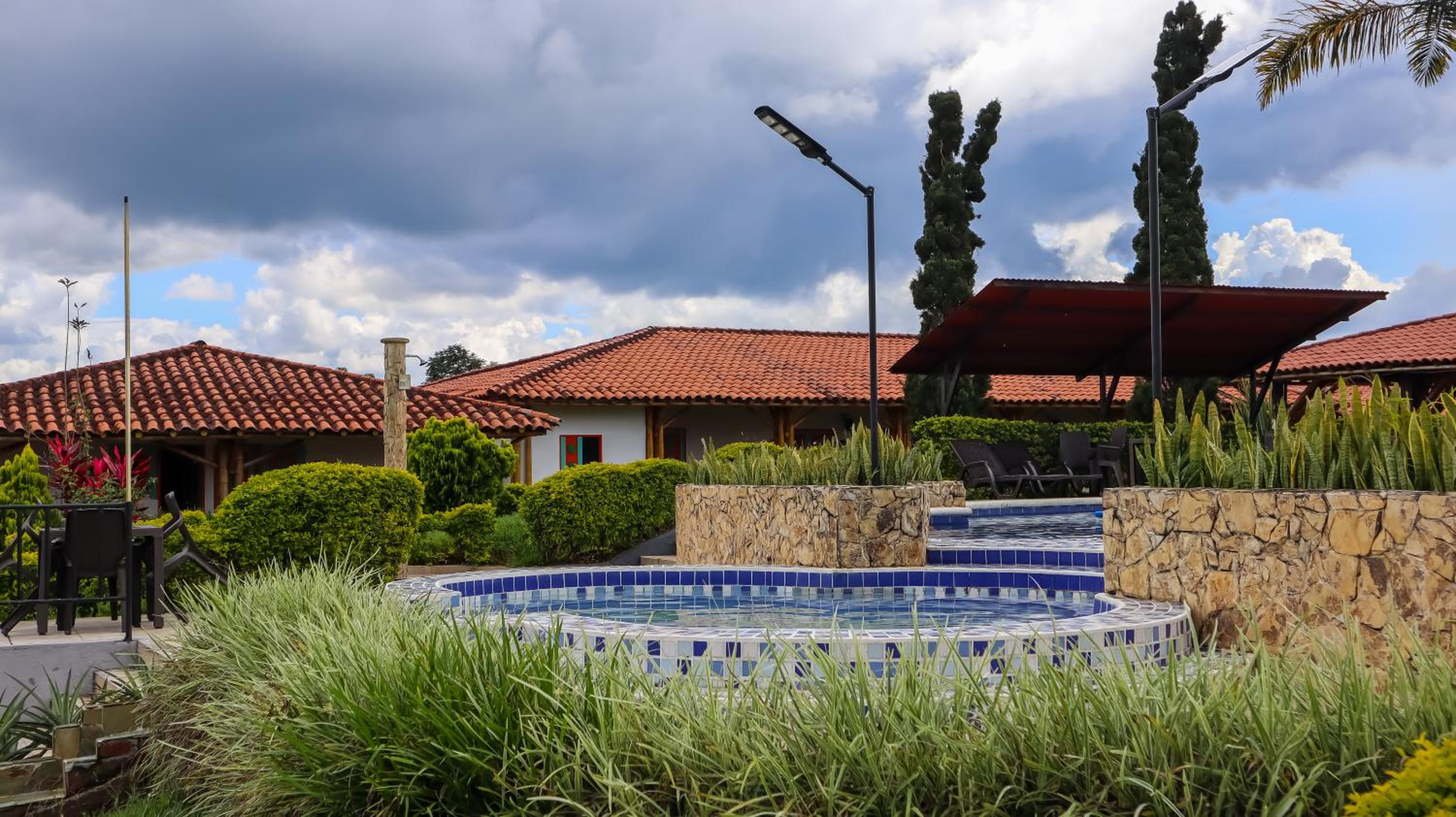 Las instalaciones muy bonitas, muy limpias y queda a 10 minutos del pueblo de quimbaya, de hecho estaban en ferias, en el hotel hubo una fonda me en cantó con cantante invitado y cerveza artesanal libre 1 hora, estuvo increíble!!