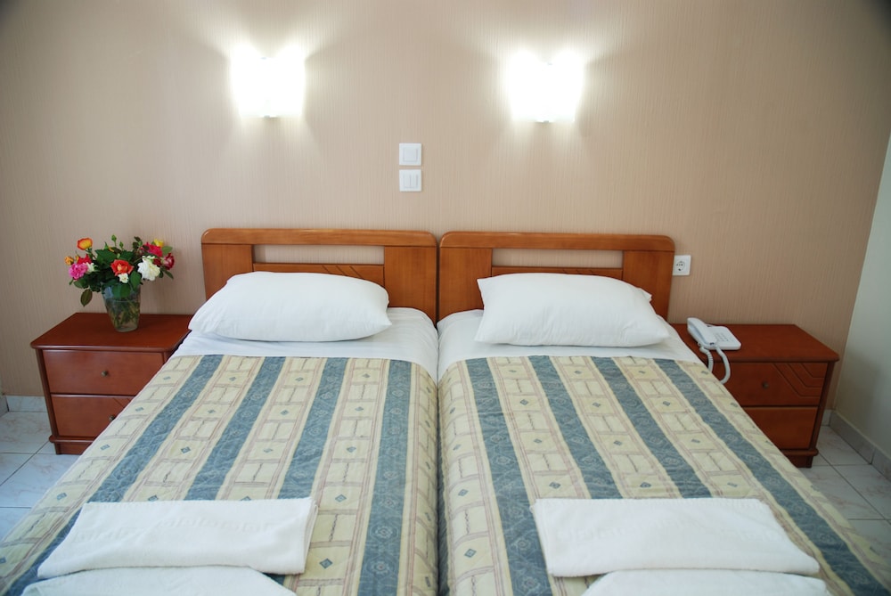 Albergo vicino al mare, sconsiglio però le spiagge di Argasi. Camere insonorizzate male. Wifi disponibile ovunque ma con una ricezione decente solo alla reception. Colazione di qualità sufficiente, molto meglio il buffet a pranzo e cena.