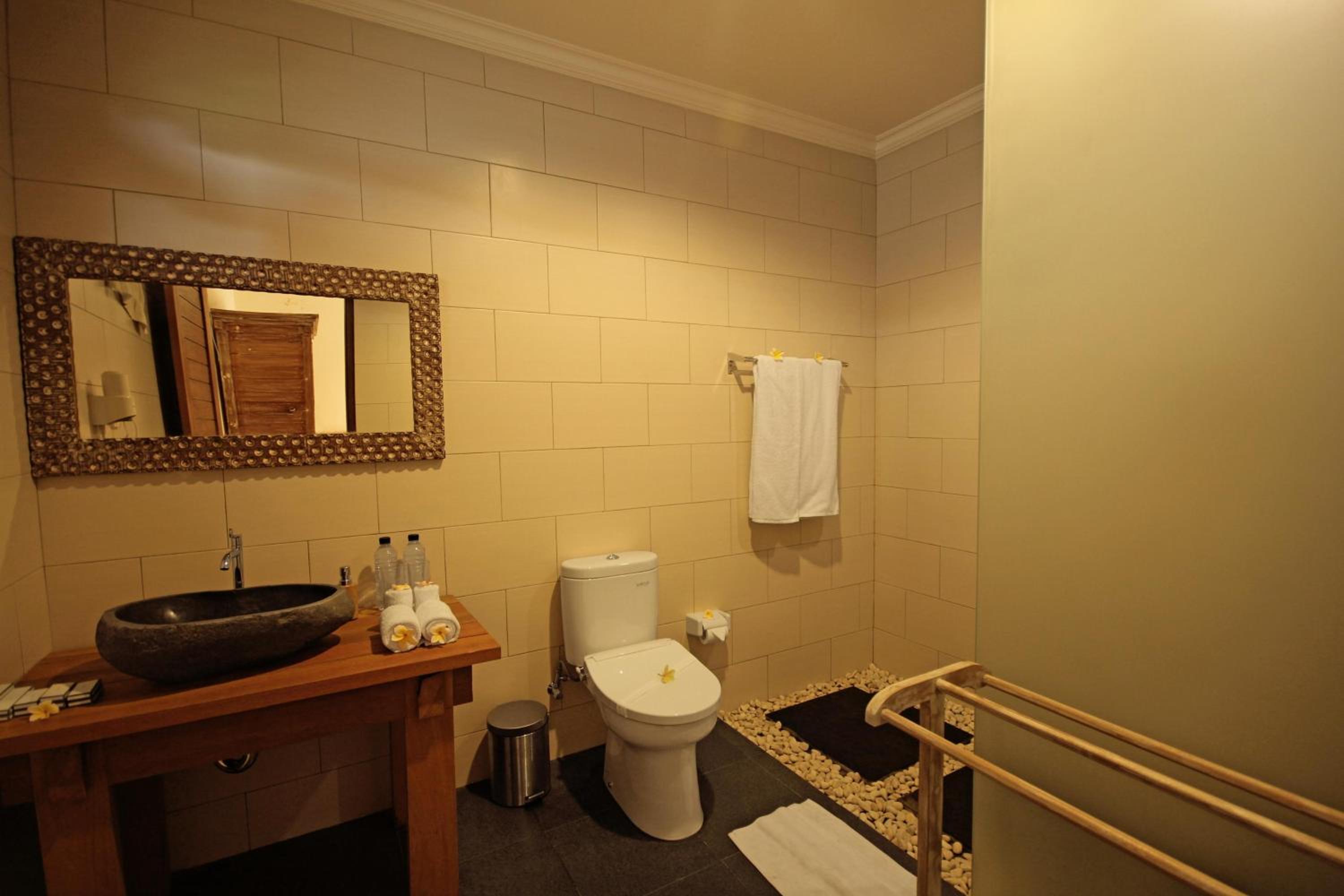 The hotel provides well-equipped rooms with flat-screen TVs, refrigerators, and private bathrooms. Some units offer picturesque pool views, and the friendly staff is available 24/7 to assist guests in English and Indonesian.