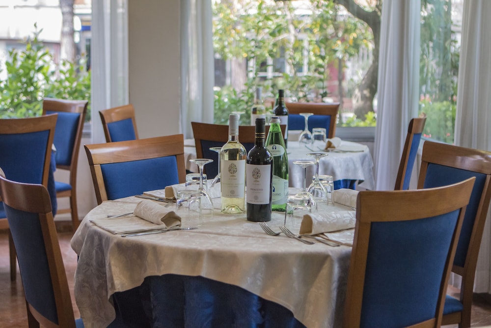l'albergo è proprio in centro a pochi passi dalla via commerciale, e dal mare. come hotel non c'è male, camere moderne, ma il bagno se devo dare una definizione, praticamente lo definirei come un loculo...la doccia si stava strettissimi (a misura per bambini), lo spazio tra il wc e il muro non consentiva una postura normale, dovevi girare le gambe, l'aria condizionata, la mettevo a 30 gradi ma non usciva più di 21 . la colazione era abbastanza abbondante ma le torte (confezionate) erano del giorno precedente se non di più (erano molto secche). la WIFI non prendeva da nessuna parte. in conclusione direi che per la posizione è ottima, ma non per il resto.