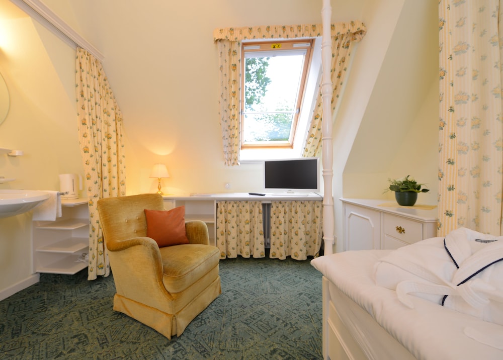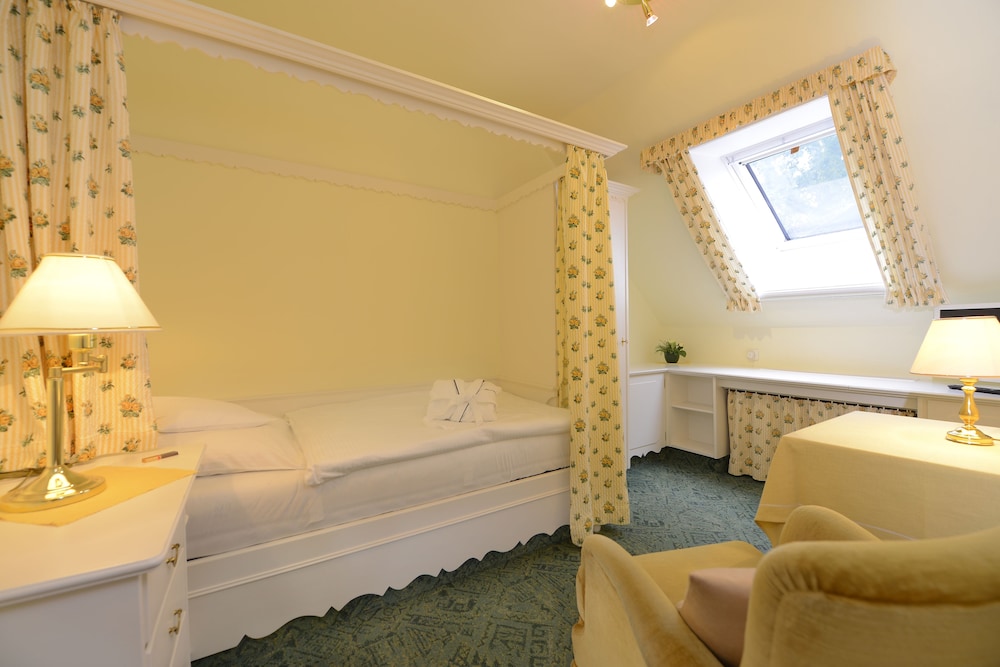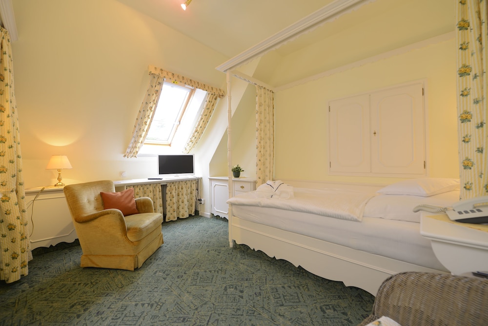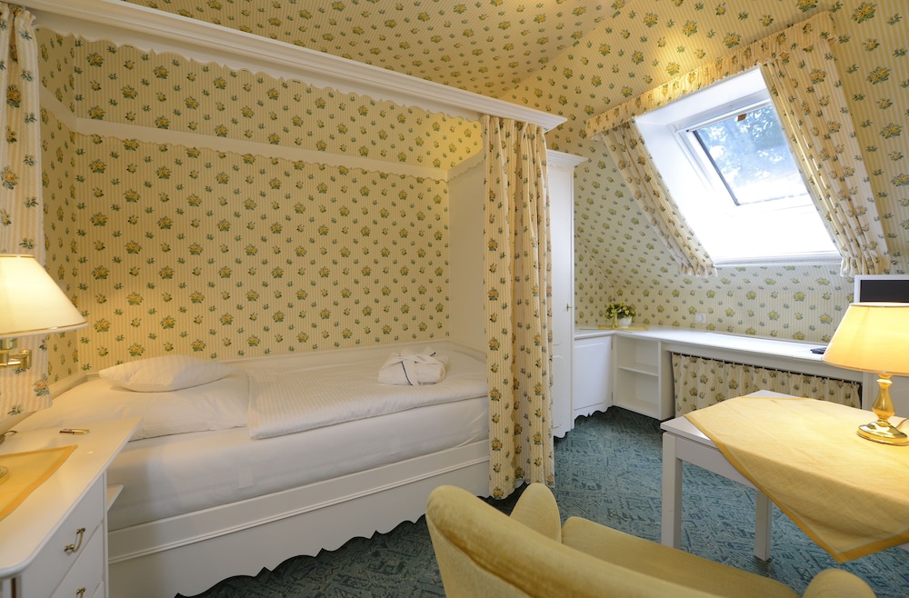 Idylisk og stilrigt mindre hotel med hyggelige værelser med god plads. Ophold startede med vi blev personligt modtaget af hotelejeren. Smukt vedligeholdt ældre hotel, som er perfekt til både kortere og længere ophold. Dejlig morgenmad hvor hvert hotelværelse på forhånd har fået reserveret deres eget bord, hvor morgenmaden primært serveres ved bordet og der er mulighed for frit at vælge mellem nylavede røræg eller spejlæg eller kogt æg.