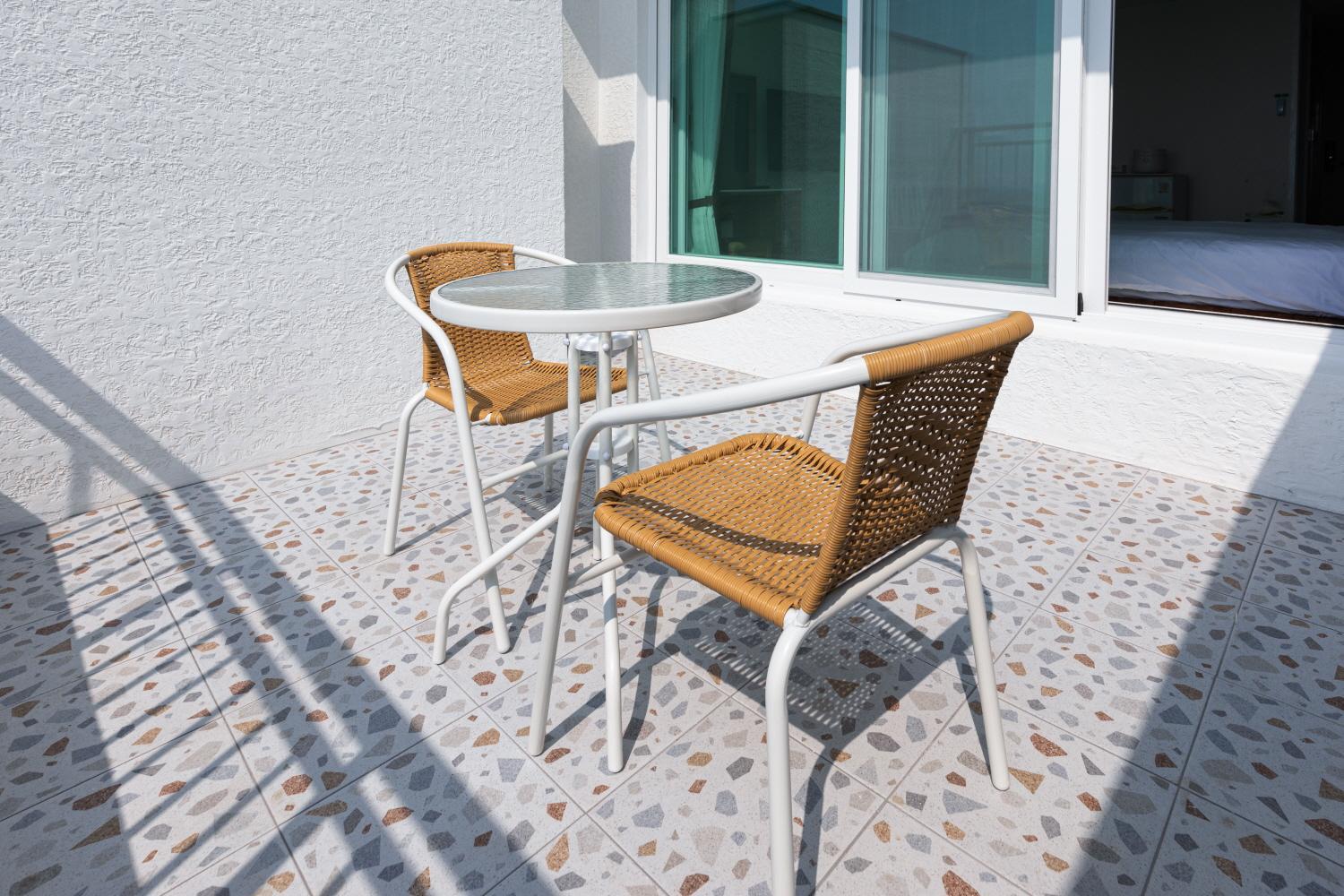 Big room with a pentry and everything you need for preparing a meal. Silent and effective ac. Big comfortable bed. Shampoo, conditioner, soap and toothpaste included but no lotion. Three pairs of slippers. A pair for the main room, a pair for the bathroom and a pair for the balcony.