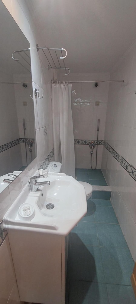This hotel was dirty and old. There was mold in the bathrooms. The bedding was uncomfortable. They didn’t properly clean the room. I pulled the comforter off and there were stains and a dead fly. The closet and drawers smelled bad and so did the hallways and elevator. Every time we used the sink a soapy foam would come up of the drain on the bathroom floor. The shower curtain was disgusting. The staff was not courteous or friendly. A pair of my shorts went missing during the trip and I asked them several times to look for them. They never found them. One day we accidentally spilled a drink in the hallway by our room. I notified the reception and she didn’t have access to a mop. She handed me paper towels instead. They also didn’t supply us with enough toilet paper. They never replaced the soap in the room either. They didn’t like to give clean towels. The breakfast was not very good. The coffee was instant and the juice was not fresh. I noticed a lot of times the food was leftover from the day before. They were also oddly strict and rude. They didn’t allow us to even take a cup of milk to the room. While enjoying the pool one morning one of the staff members came out to tell the kids at the pool they are not allowed to jump in. No iron in the room so I used my portable steamer. The steamer accidentally stained the sheet. They were quick to charge me 35 euro at checkout for a scratchy sheet they probably had from 1980. They didn’t compensate me for the missing shorts.