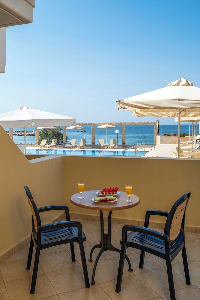 On avait vue sur la colline et c était très calme. Les chambres avec vue mer doivent être un peu plus bruyantes car il y a une rue passante comme dans toutes les zones touristiques. Mais cela reste acceptable. Personnel très agréable. Le petit bémol est qu on est à 5 km de hania donc le bus est incontournables