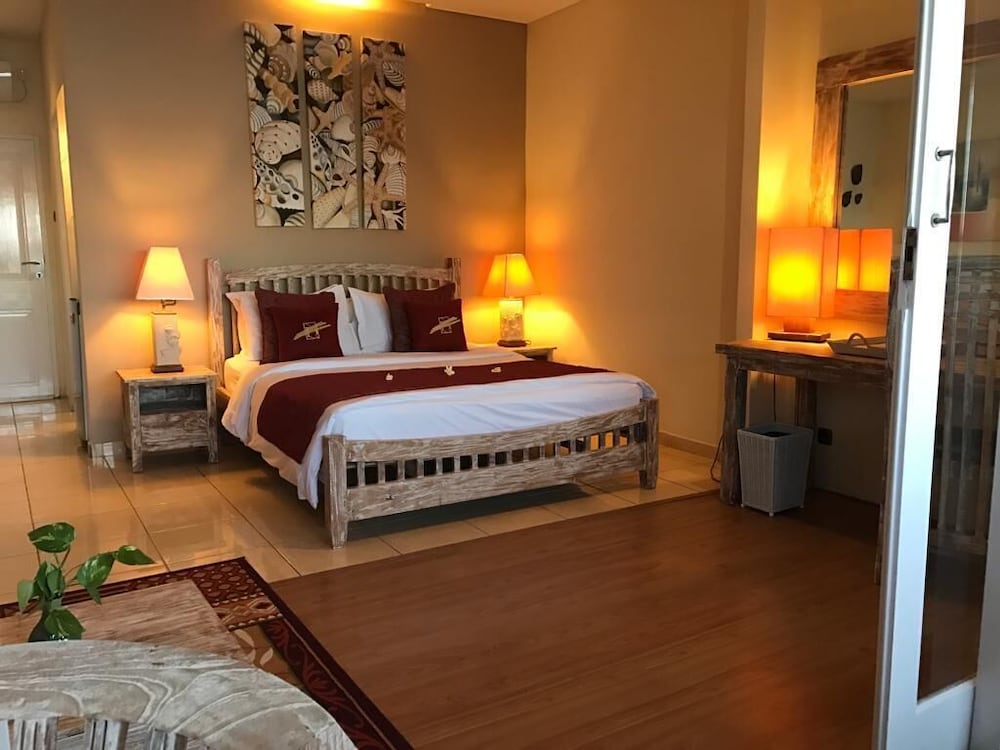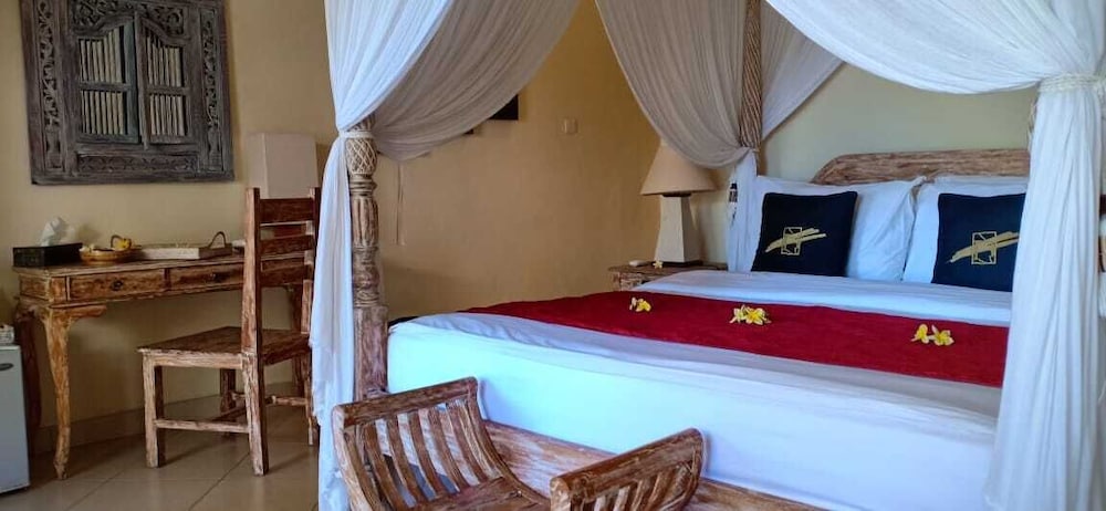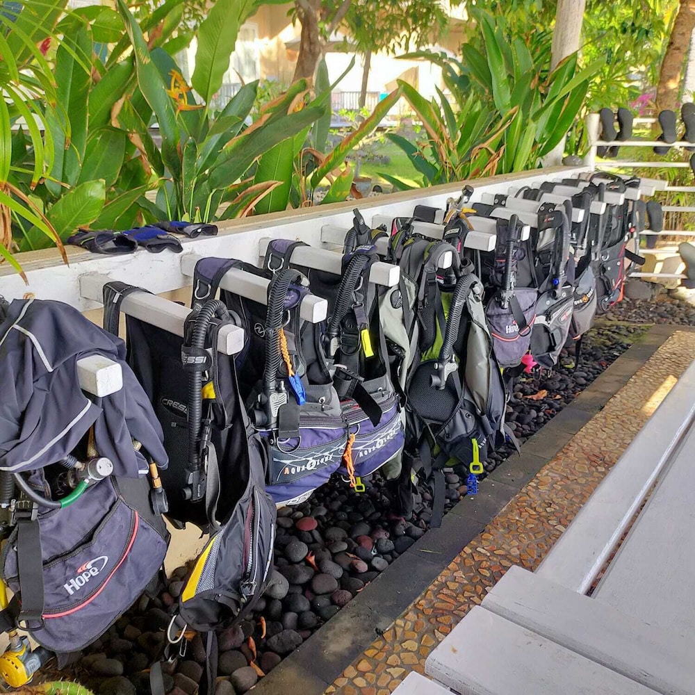 The location and environment is excellent. Just a few minute walk to the USAT Liberty Wreck and a very short ride to the Drop Off, this is the perfect resort to stay in for your diving in Tulamben. The rooms are great. Hot water shower is great too. It's a pity that I only stayed there for one night. Would love to stay longer next time. The diving may be a bit pricey when compared with local dive centers but it's well worth it. They deliver your equipment to the dive sites. Dive master Enoch is very nice and helpful. I think the facilities of this resort compare most favorably to the other resorts nearby (as we got to walk past a few other resorts when we return from diving at the Drop Off).
