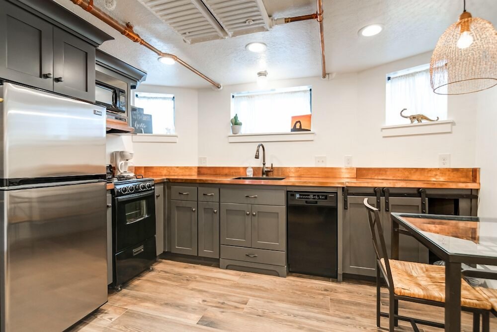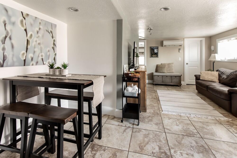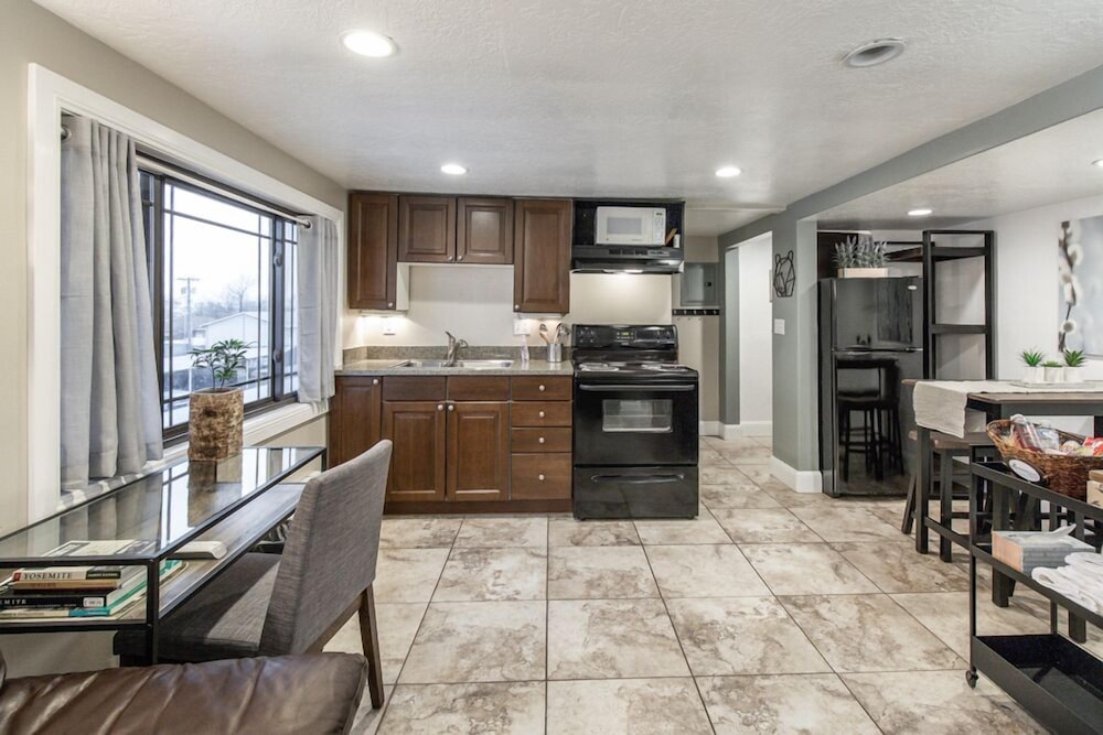 Nicely decorated. Very clean. Small bathroom- could have more pressure in the shower head. Very thin TP. Comfortable beds. Full kitchen. Safe neighborhood. Great area- nearby nearly everything and close to BYU. We would stay again. Very decent price!