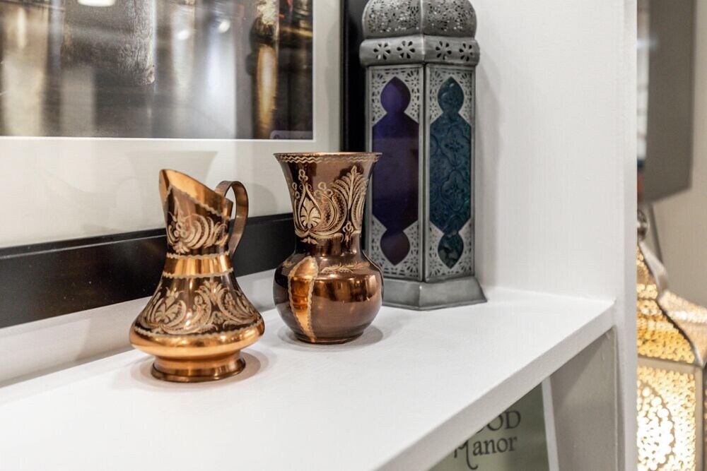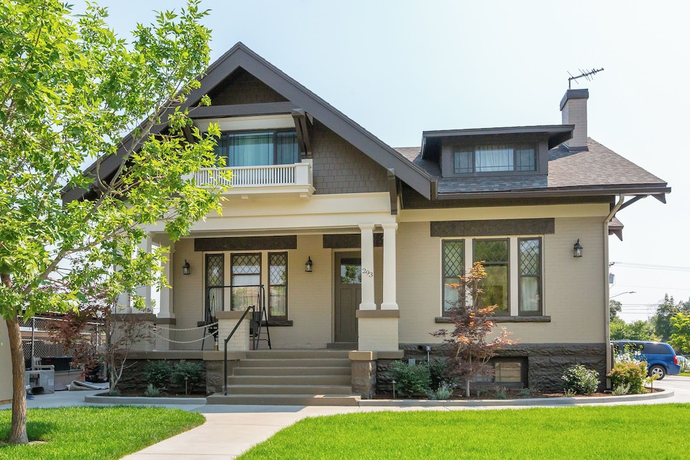 This is a restored older home which was professionally restored with homey touches. Very inviting and comfortable.