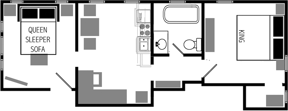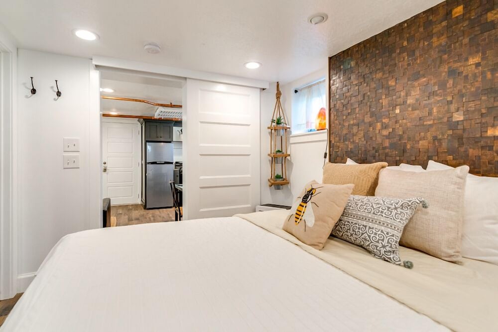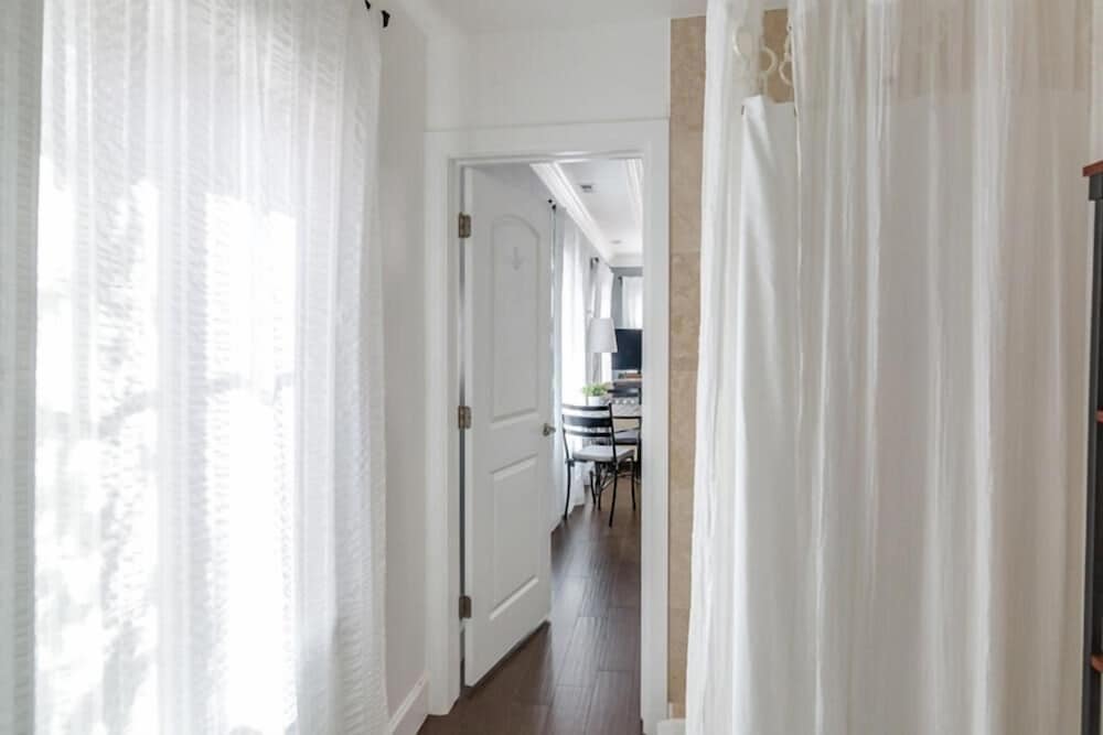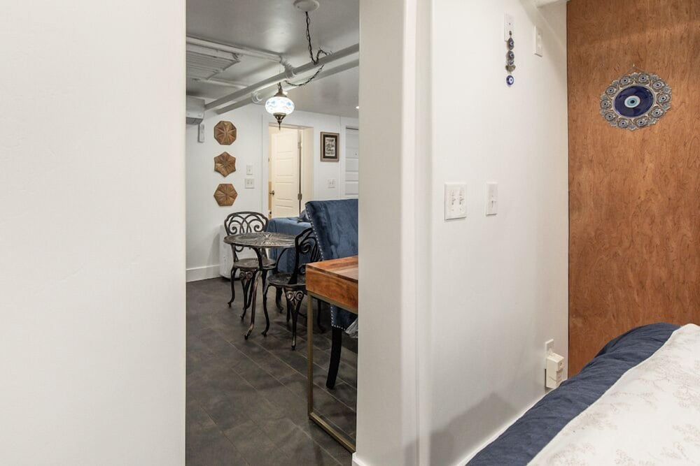 We loved this lil apartment with a full size kitchen and separate sitting area from the sleeping quarters. It’s small, but perfect for 2 people. It got hot in the bedroom, but we found a fan in the closet to use. It was extremely quiet and convenient to everything!