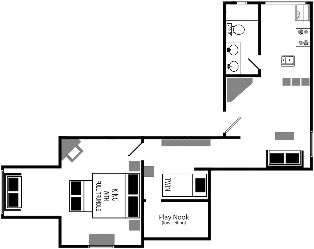 It was a small, basement unit with 2 rooms and a bathroom. The kitchen was a good size for the small unit. The kitchen was well stocked with the things you need. The decor was all on bees and beehives. It was cute. Way too many pillows. We had too take the pillows off the couch in order to have space to sit. It had a nice walk in closet to put all the pillows in.