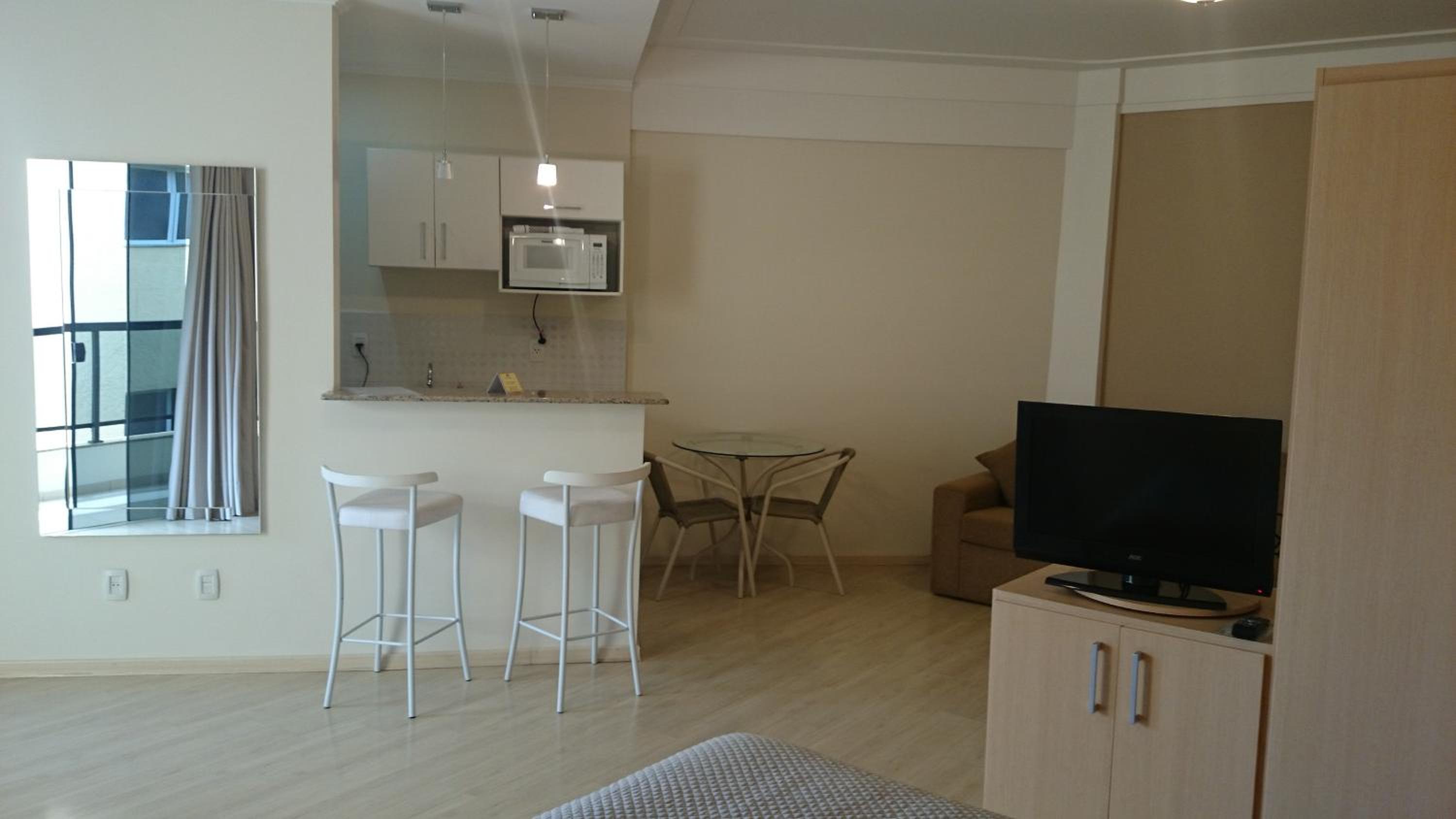 O apartamento é bem espaçoso, o chuveiro é muito bom e o cafe da manha é delicioso