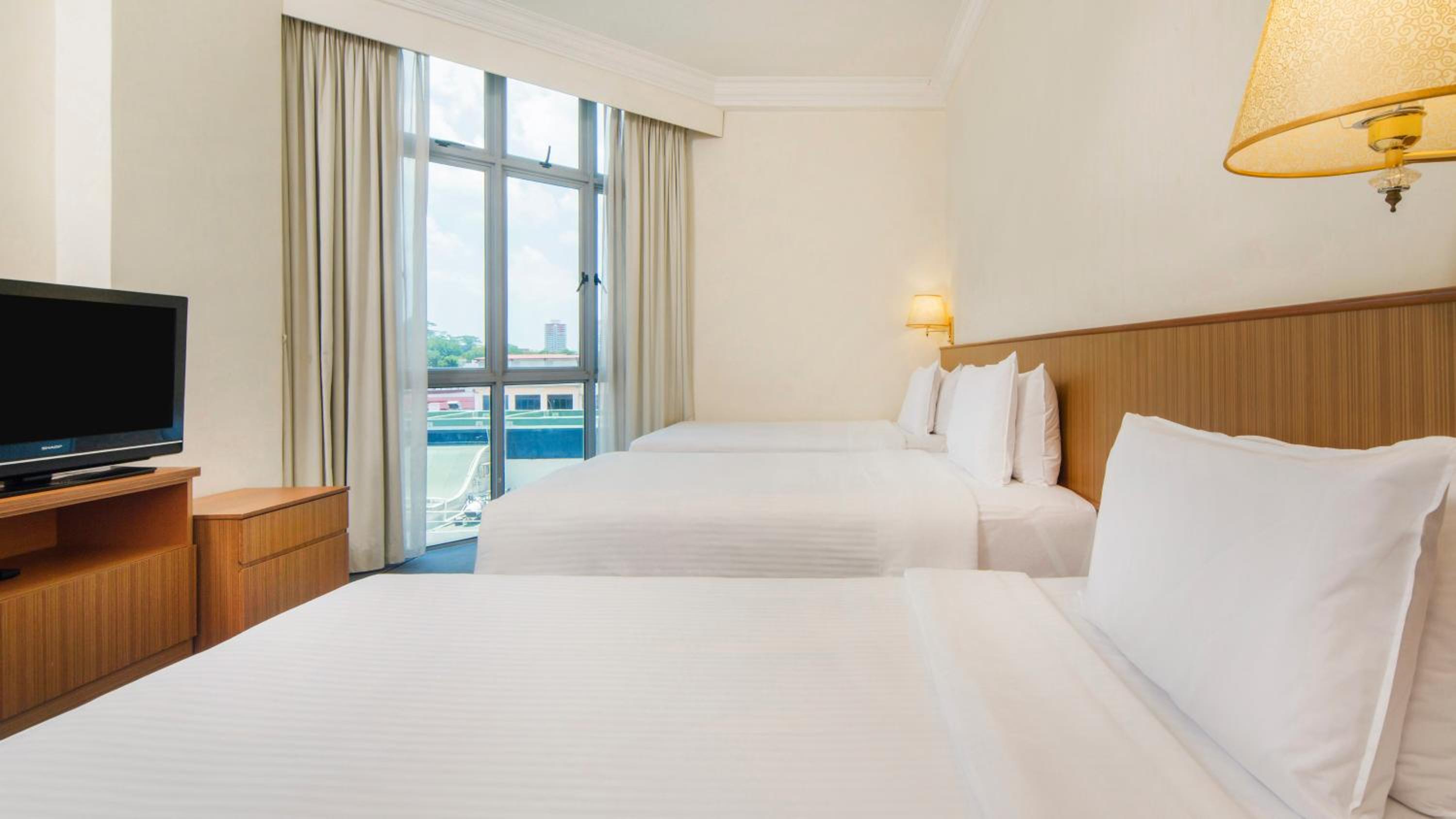 All our rooms and public areas are air-conditioned and Wi-Fi enabled, ensuring a comfortable stay for our guests. Each room features a 32-inch flat-screen TV with cable channels, private bathrooms with complimentary toiletries, and laptop-compatible safes.