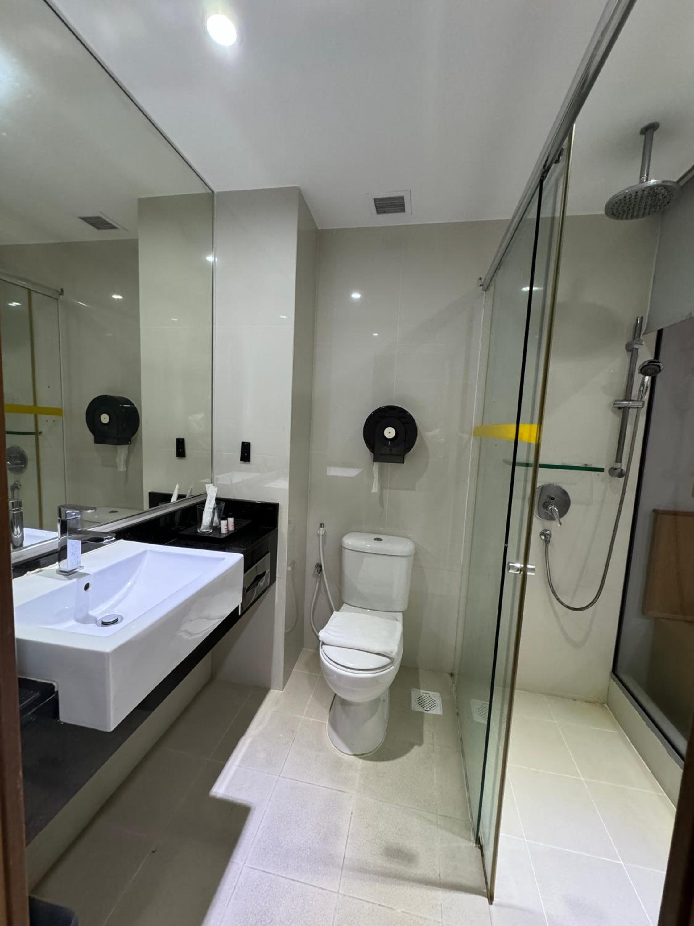 Clean pillowcases and more toiletries e.g. hair cap and better shower bath should be provided.
