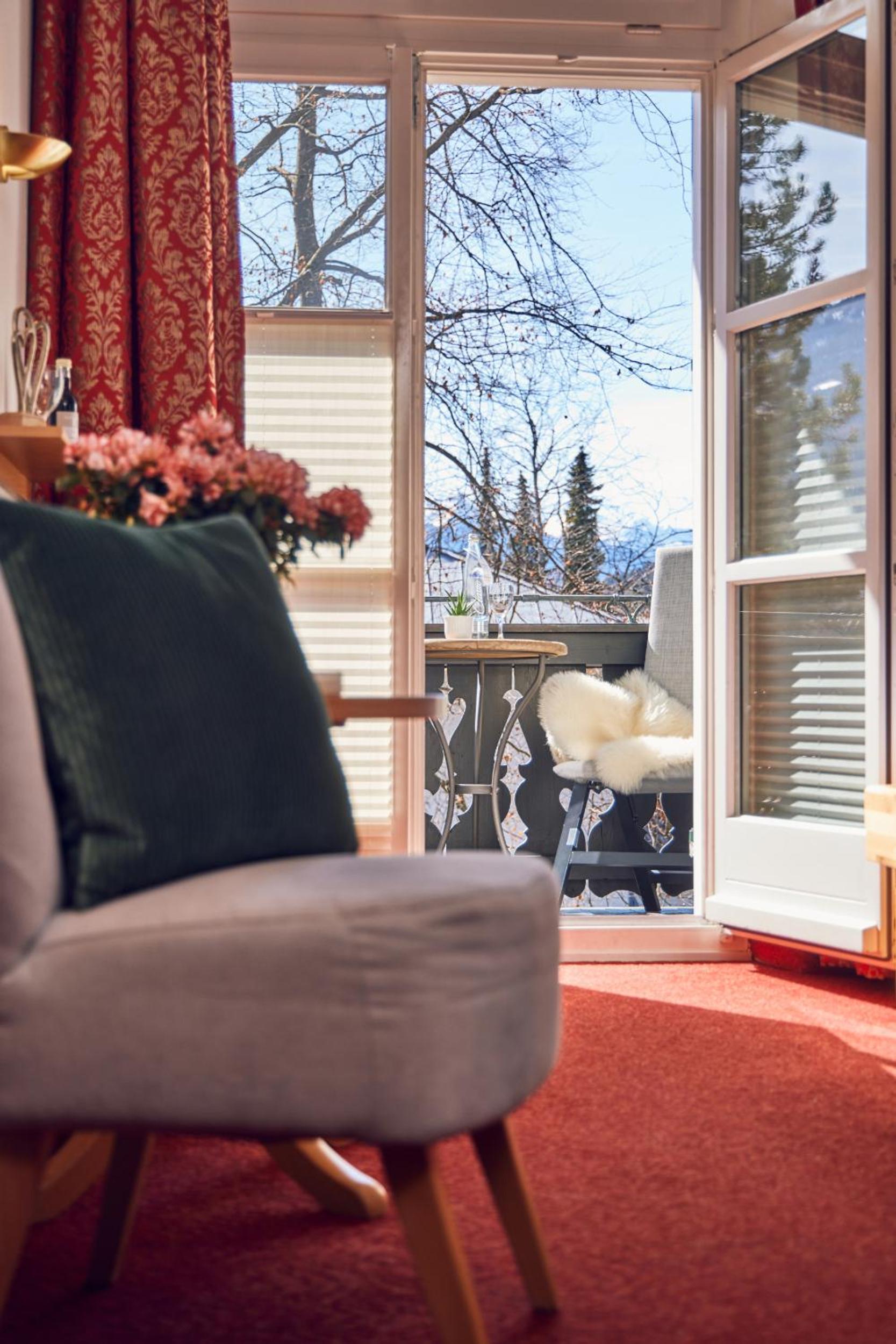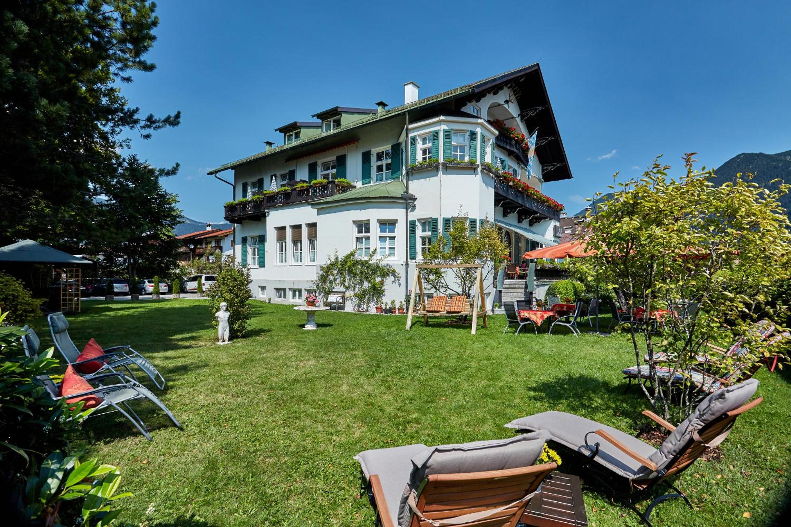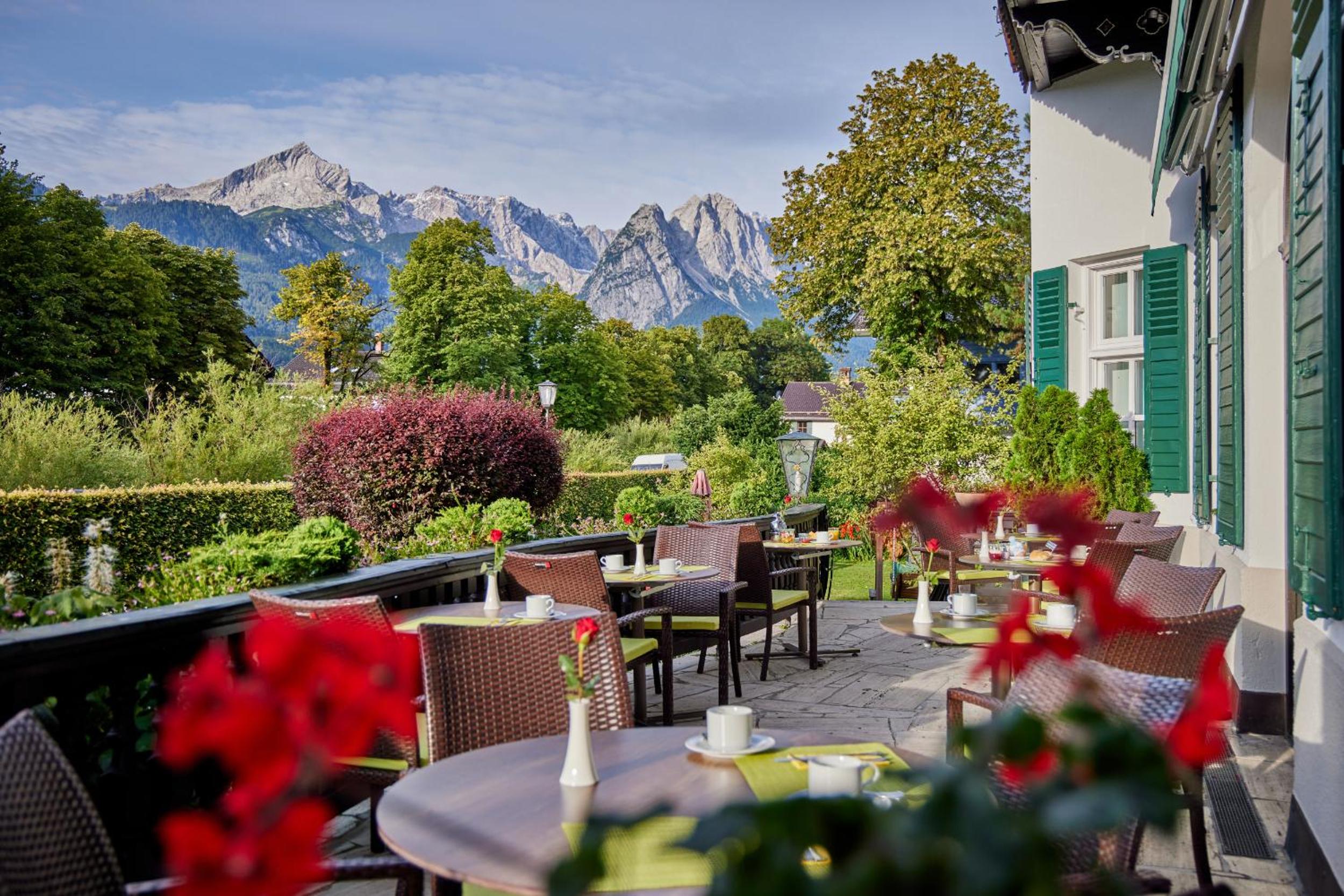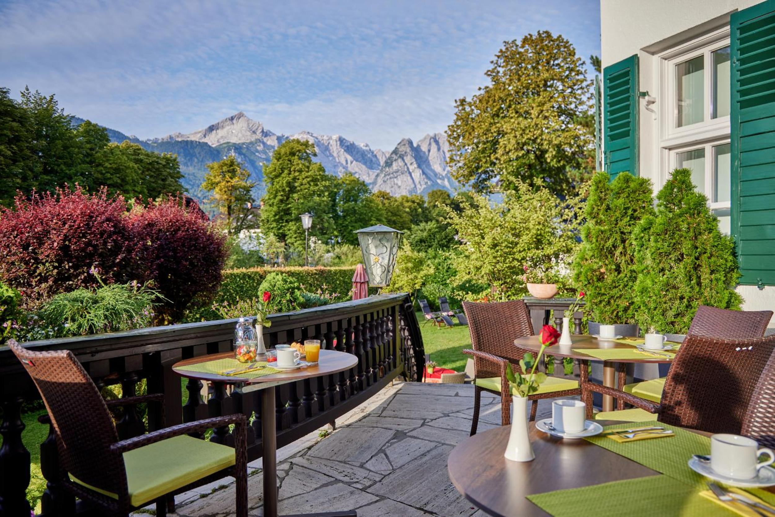 Das Frühstück war sehr gut, z.b. mit frischem Obst, Joghurts, Cremes appetitlich in kleinen Gläschen, vor allem in einem historischen gemütlichen gepflegtem Raum. Die Terrasse war sehr schön mit direktem Blick auf die Zugspitze, im Garten Liegestühle, Stühle, eine Hollywoodschaukel. Die Lage ideal direkt an der Loisach, knapp 10 Minuten entfernt von der Fussgängerzone. Das Personal sehr freundlich, vor allem die Direktorin sehr hilfsbereit, da ich das Pech hatte, dass mein Koffer mit dem Gepäckservie der DB erst am Montag anstatt am Samstag geliefert wurde.