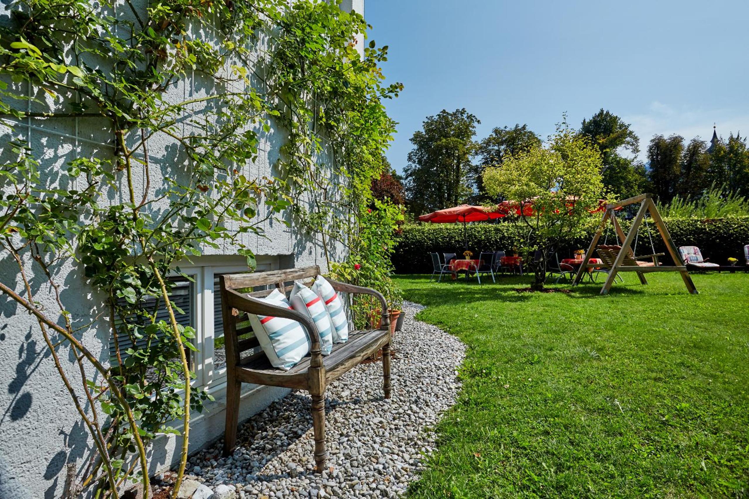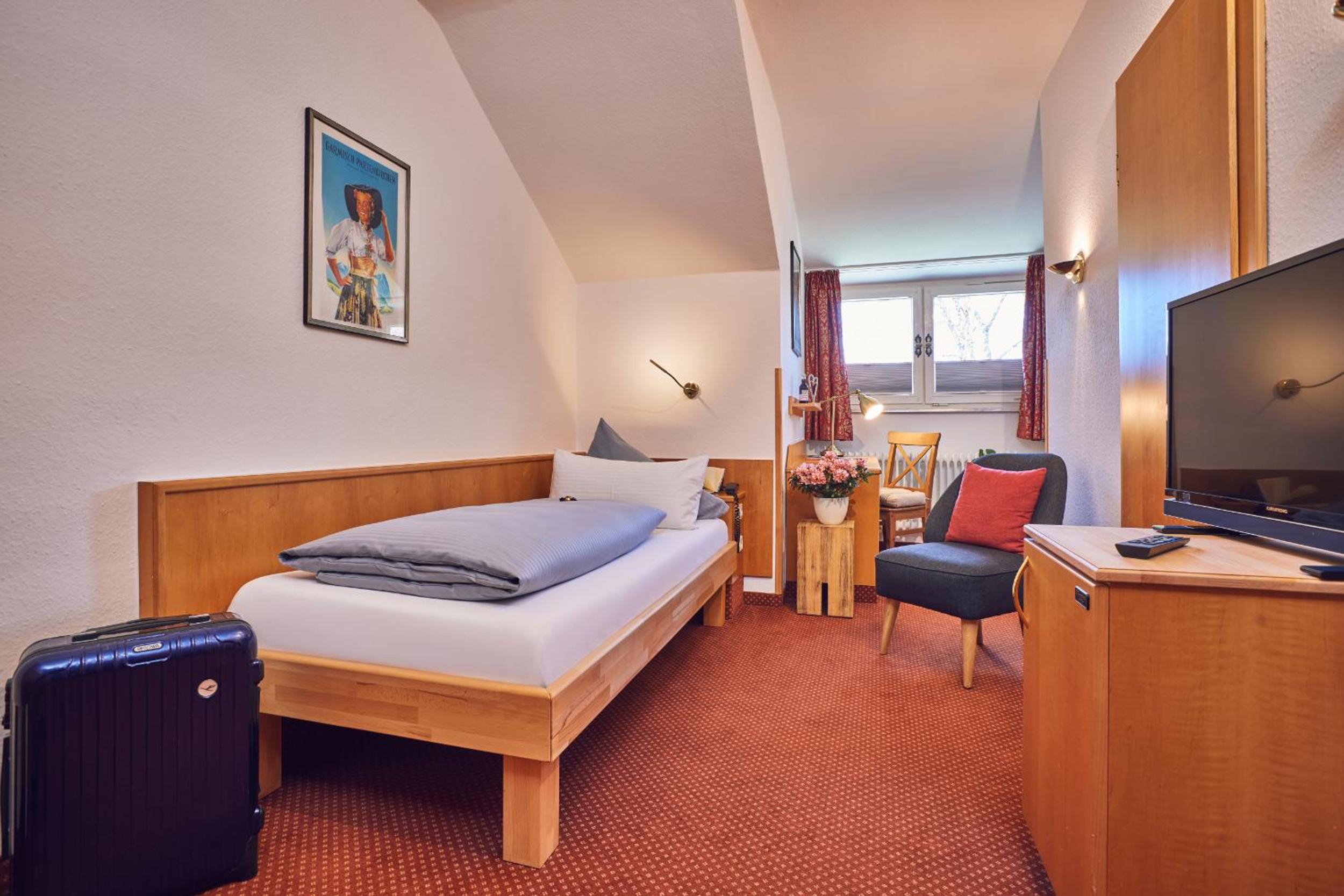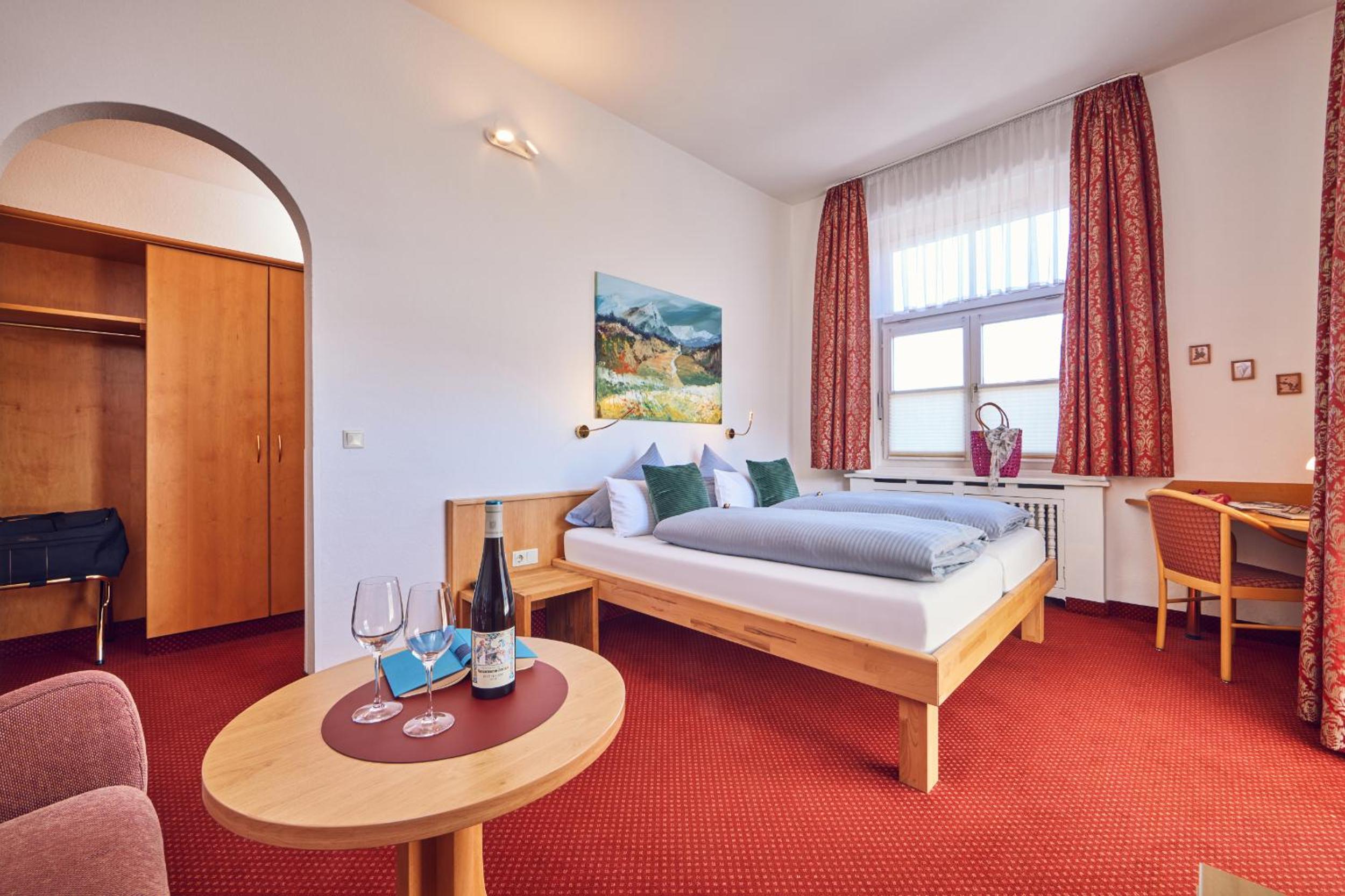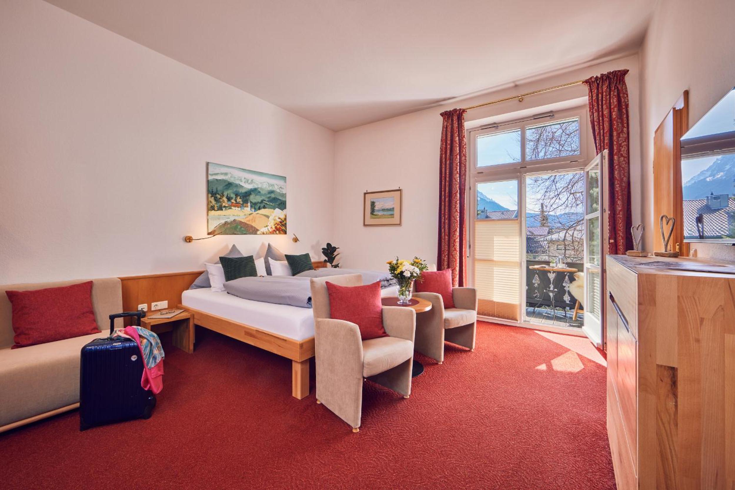 Das Frühstück war sehr gut, z.b. mit frischem Obst, Joghurts, Cremes appetitlich in kleinen Gläschen, vor allem in einem historischen gemütlichen gepflegtem Raum. Die Terrasse war sehr schön mit direktem Blick auf die Zugspitze, im Garten Liegestühle, Stühle, eine Hollywoodschaukel. Die Lage ideal direkt an der Loisach, knapp 10 Minuten entfernt von der Fussgängerzone. Das Personal sehr freundlich, vor allem die Direktorin sehr hilfsbereit, da ich das Pech hatte, dass mein Koffer mit dem Gepäckservie der DB erst am Montag anstatt am Samstag geliefert wurde.