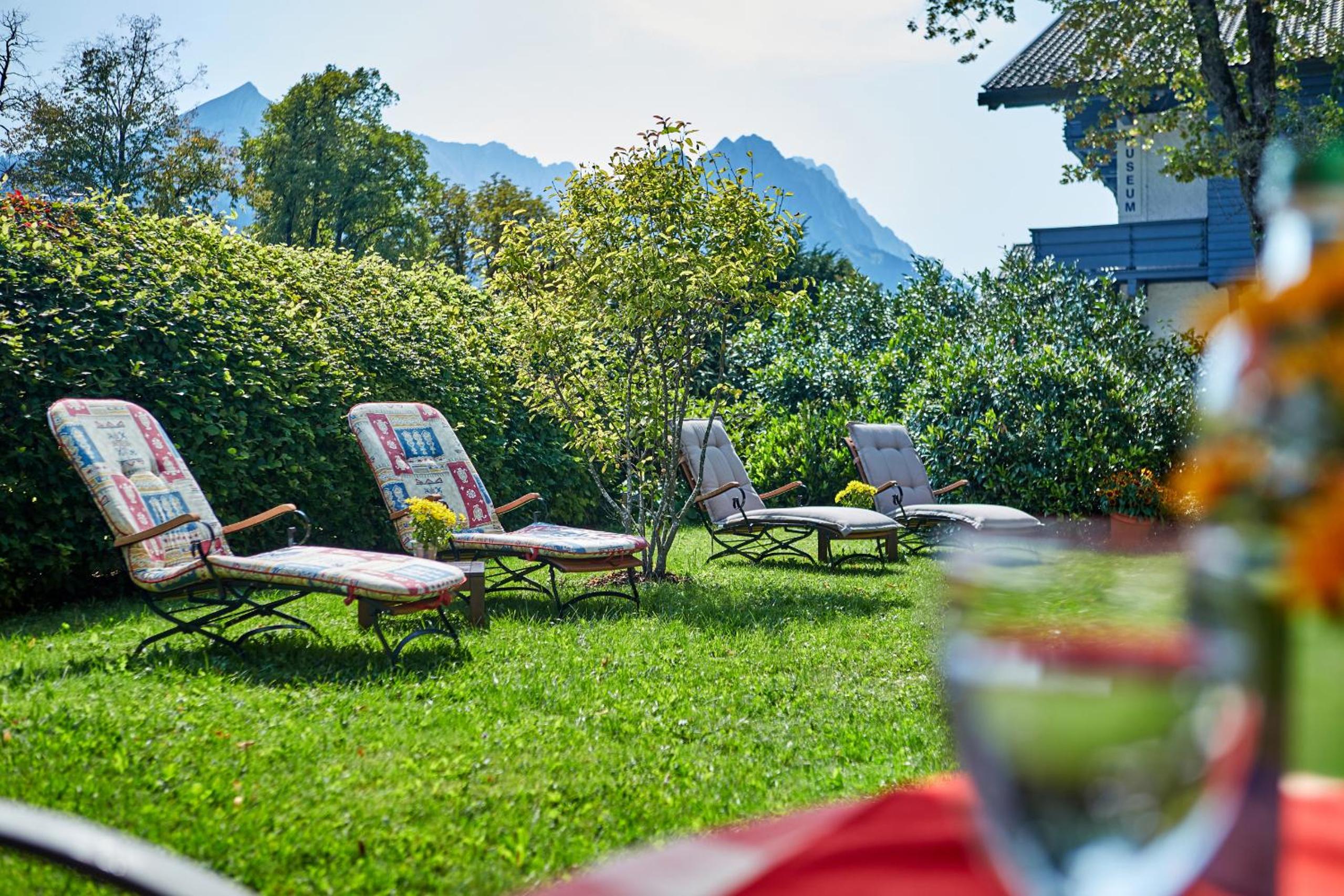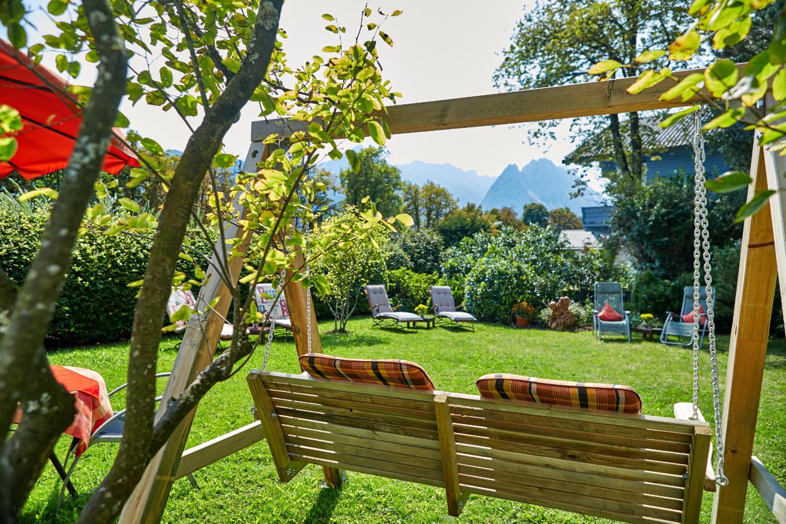 Sun Terrace and Spacious Garden: Relax on sun loungers while enjoying picturesque views of Zugspitz Mountain.