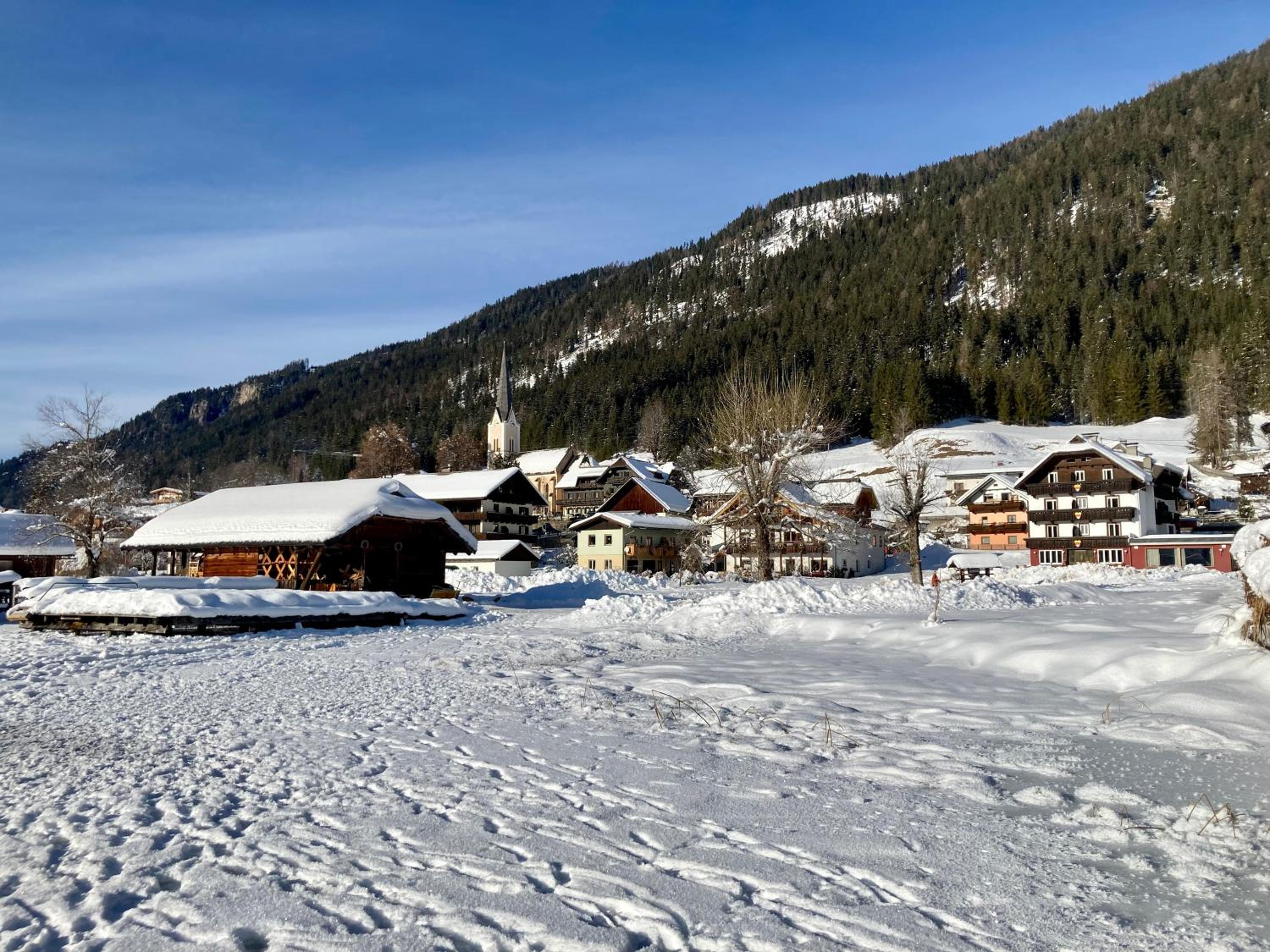 Explore 200 km of hiking paths and 100 km of mountain-biking trails in the area. In winter, experience Europe's largest natural ice-skating rink and a nearby ski area with a free shuttle service. For more adventure, visit the Nassfeld Ski Area just 18 km away.