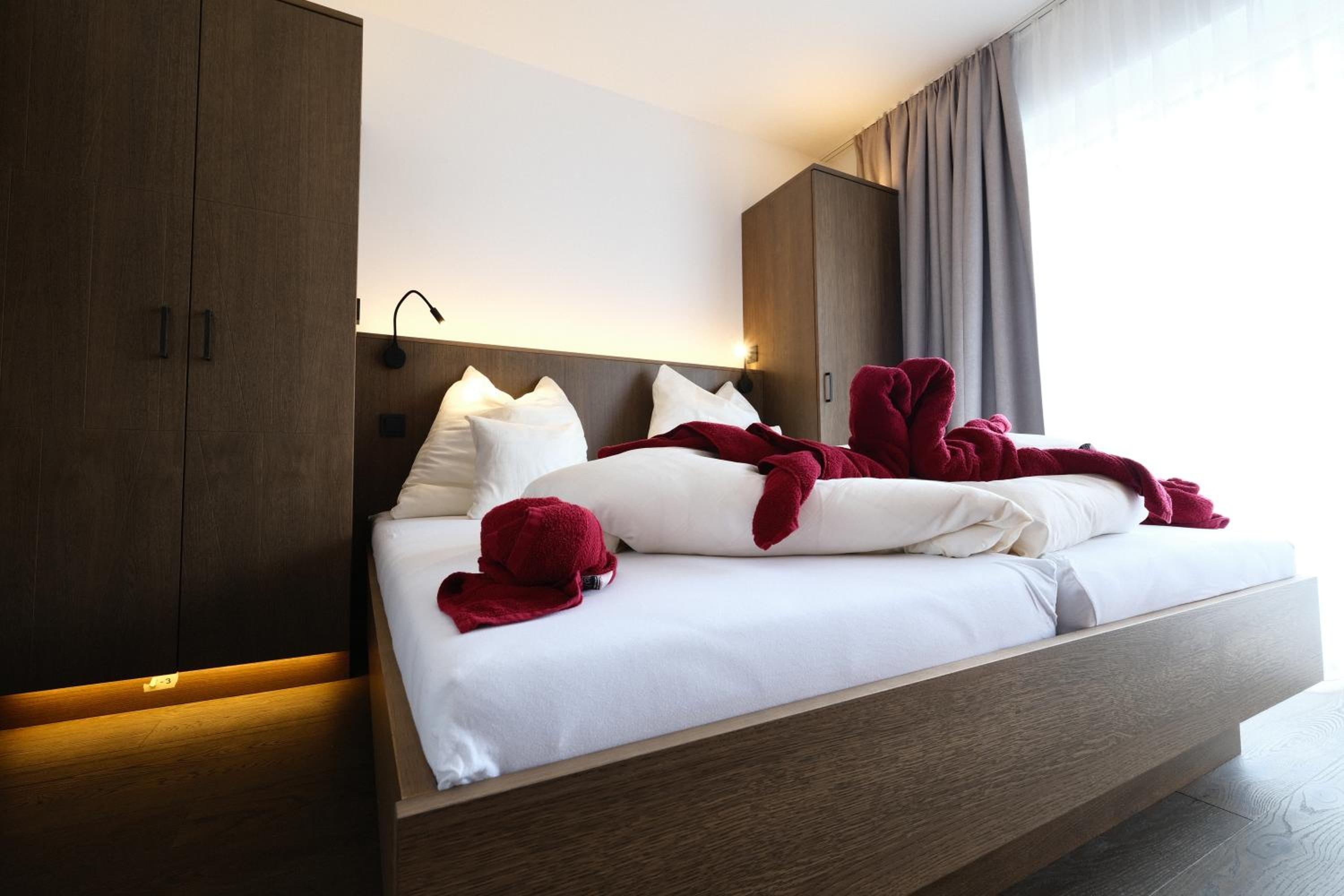 Die Betten sind ausgesprochen angenehm und das Frühstücksbuffet war rießig, obwohl zurzeit kaum Gäste da waren. Die Sauna war sehr nett und die Balkone groß genug um gemütlich beisammen zu sitzen