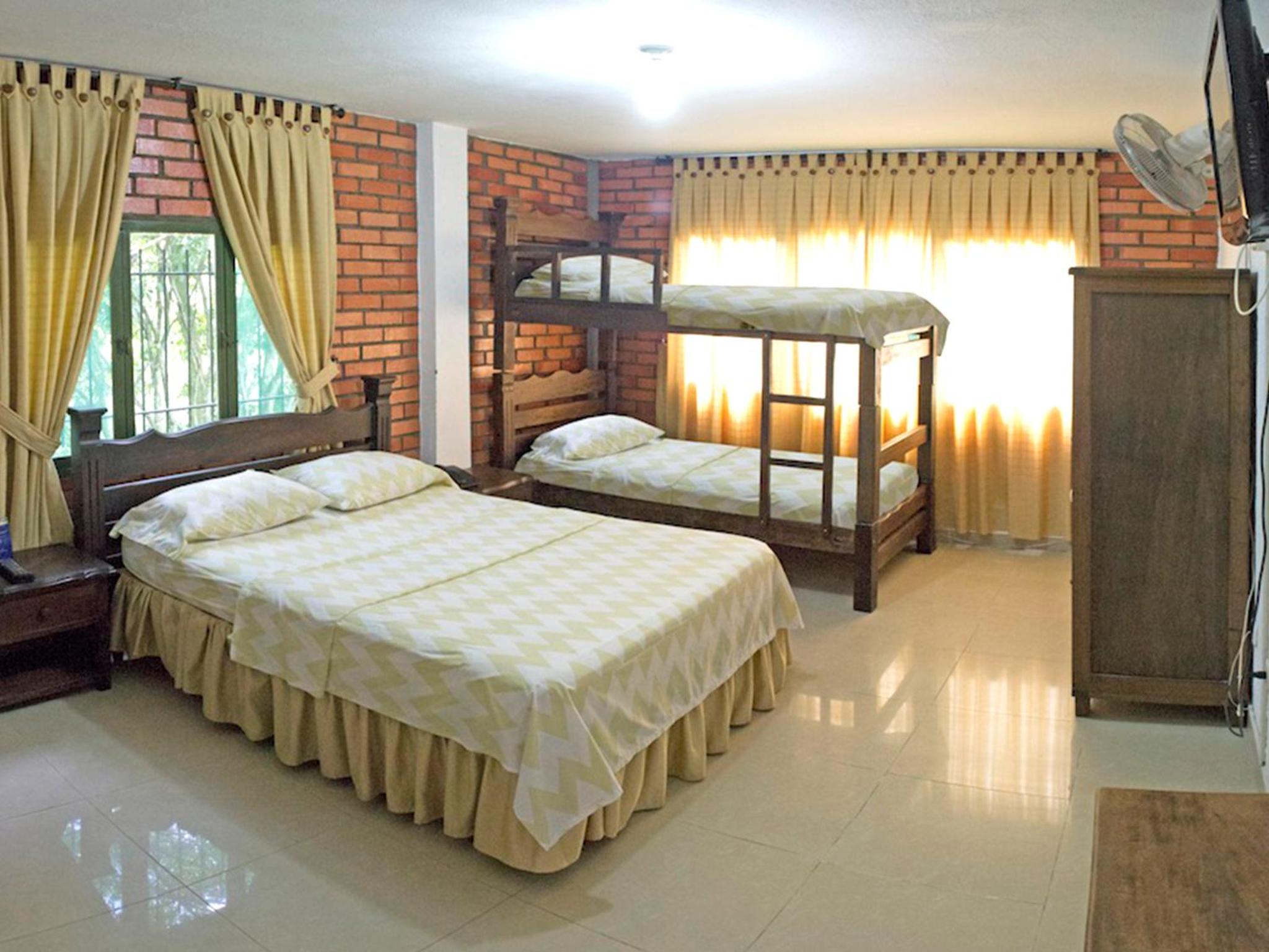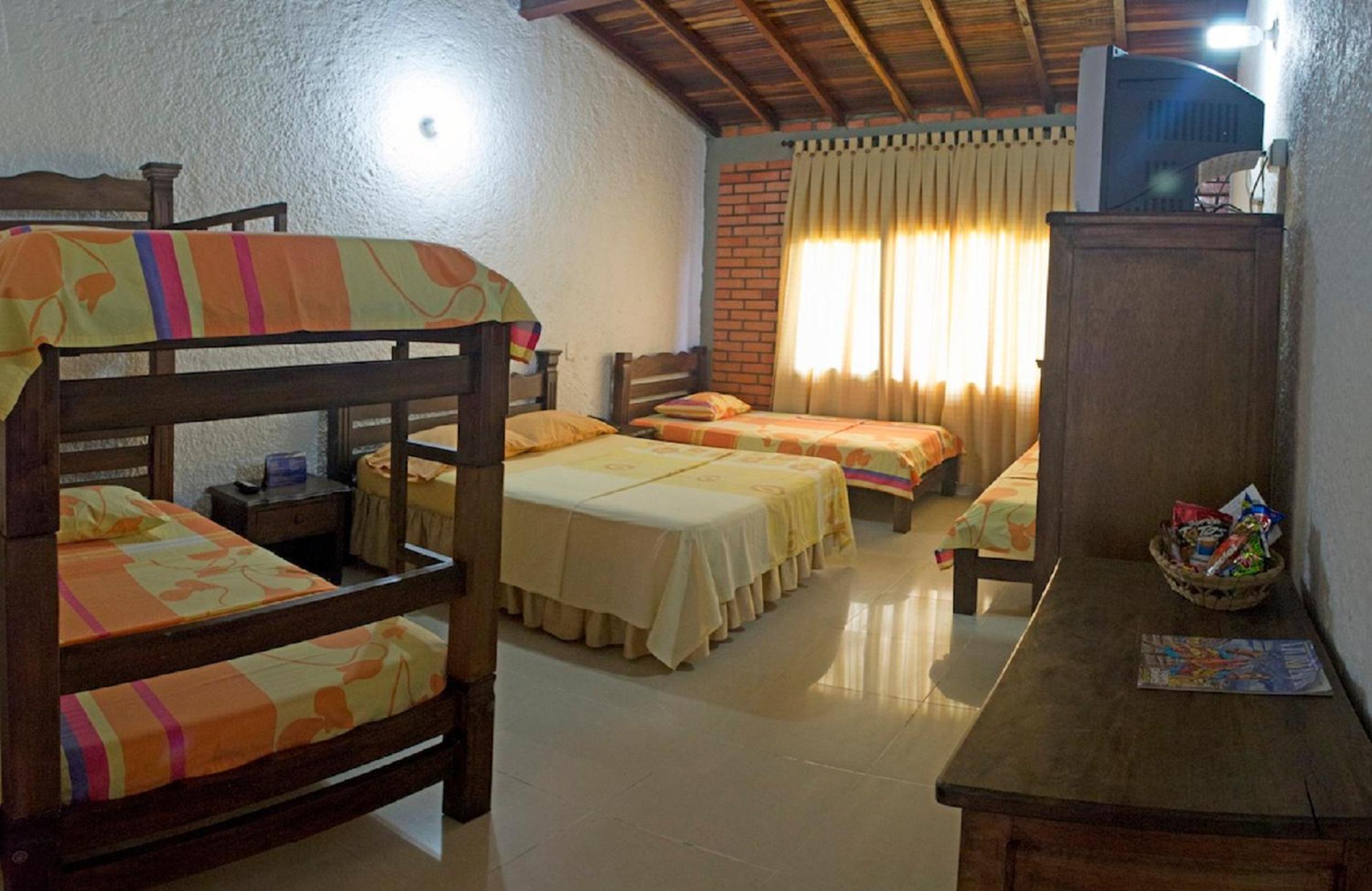 The rooms at Hotel Campestre Umpala are designed to offer practicality and comfort, featuring amenities such as cable TV, fan, safety box, and room service available throughout the day.