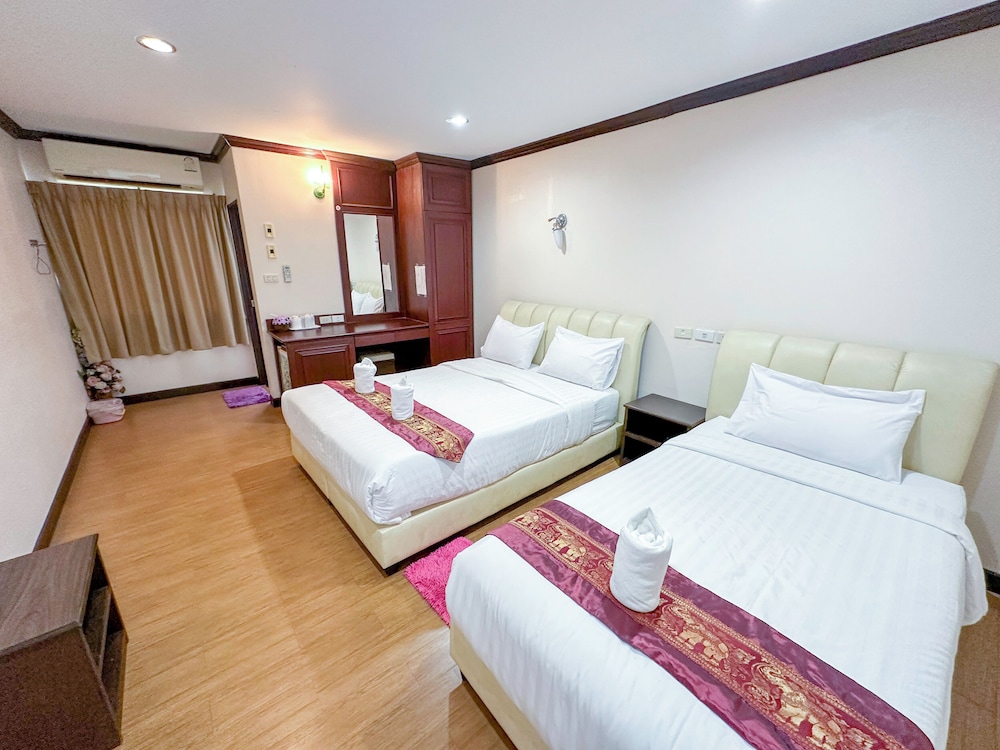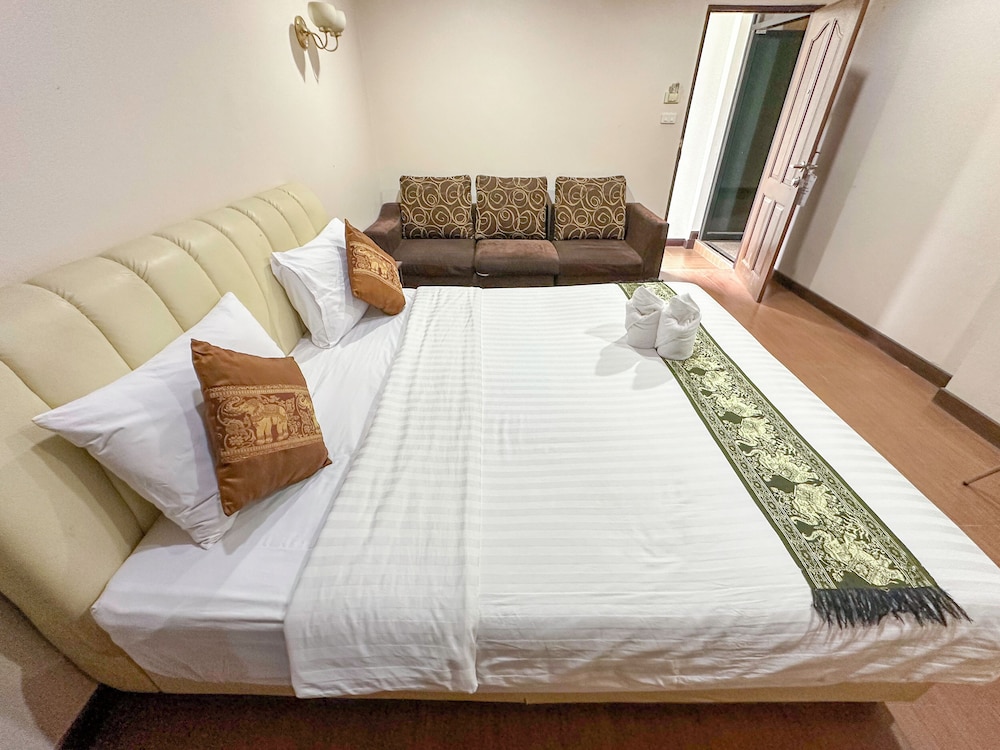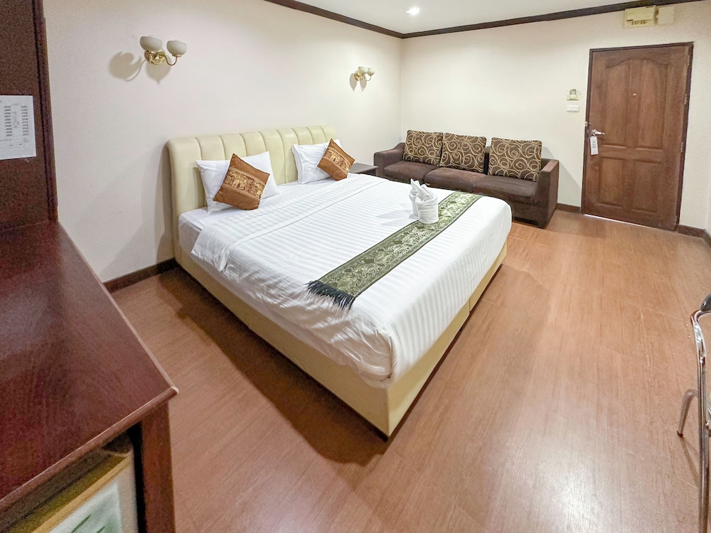 Overall a good value. Room was good and clean, bathroom was typical Thai bathroom with all the aggravations that go with that. Two big towels only, one small bar of soap only, no shower curtain, sink faucet rotated with the handle, etc. It was clean though. Front desk staff were zero for English but the translator app on my phone was adequate. Breakfast included in the price, ordered "American Breakfast" it was average at best. Not the greatest not the worst. My friend got the Thai Breakfast Khao Tom Kung for breakfast and that really looked good.Next time no farang breakfast for me lol. Desk staff were somewhat confused upon checking out about the room being prepaid (and tried to charge me again) but got it all sorted out. We arrived in my truck and parking lot was good. The road to hotel is in terrible condition with pot holes etc. so be careful driving to the hotel! Neighborhood restaurant (3 Little Pigs I think) across the parking lot from hotel was a great place for a beer and dinner. Good food good price and a live band.