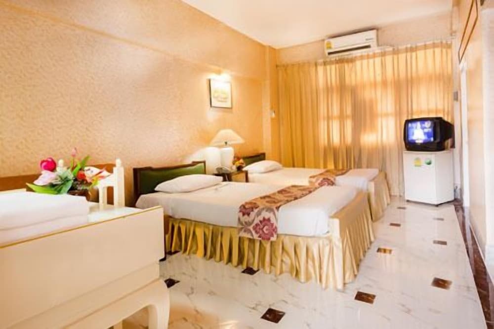Dette var i utgangspunktet et rimelig hotel, men måtte godta prisen for frokost, da vi skulle kjøre langt tidlig neste morgen. Når frokosten for 2 mennesker koster langt over prisen på hotellet( 1300 bath for 2 dårlige frokost, må være Thailands dyreste.), og langt mere enn de dyreste rettene i hotellets restaurant. Da skal man i alle fall forvente en stor og variert frokost. Det var rett og slett et elendig utvalg. Vi kunne ikke åpne vinduet, men måtte ha gardinene igjen, da de ikke hadde vasket verken vinduer eller karm på mange måneder. Balkongen var full av due ekskrementer, ja rett og slett forferdelig grisete. Renholdet inne på rommet var greit, men korridorene støvete og skitne.