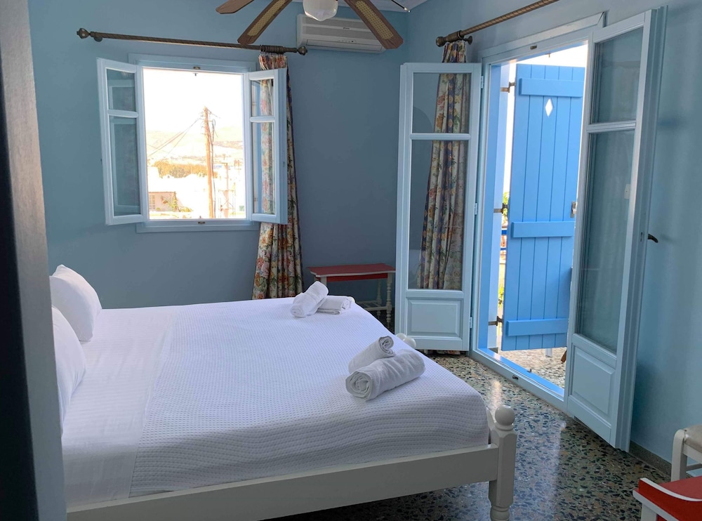 Cute family run hotel in the centre of Naousa! Great location, pretty room, super nice owners. Perfect for our stay, would recommend.