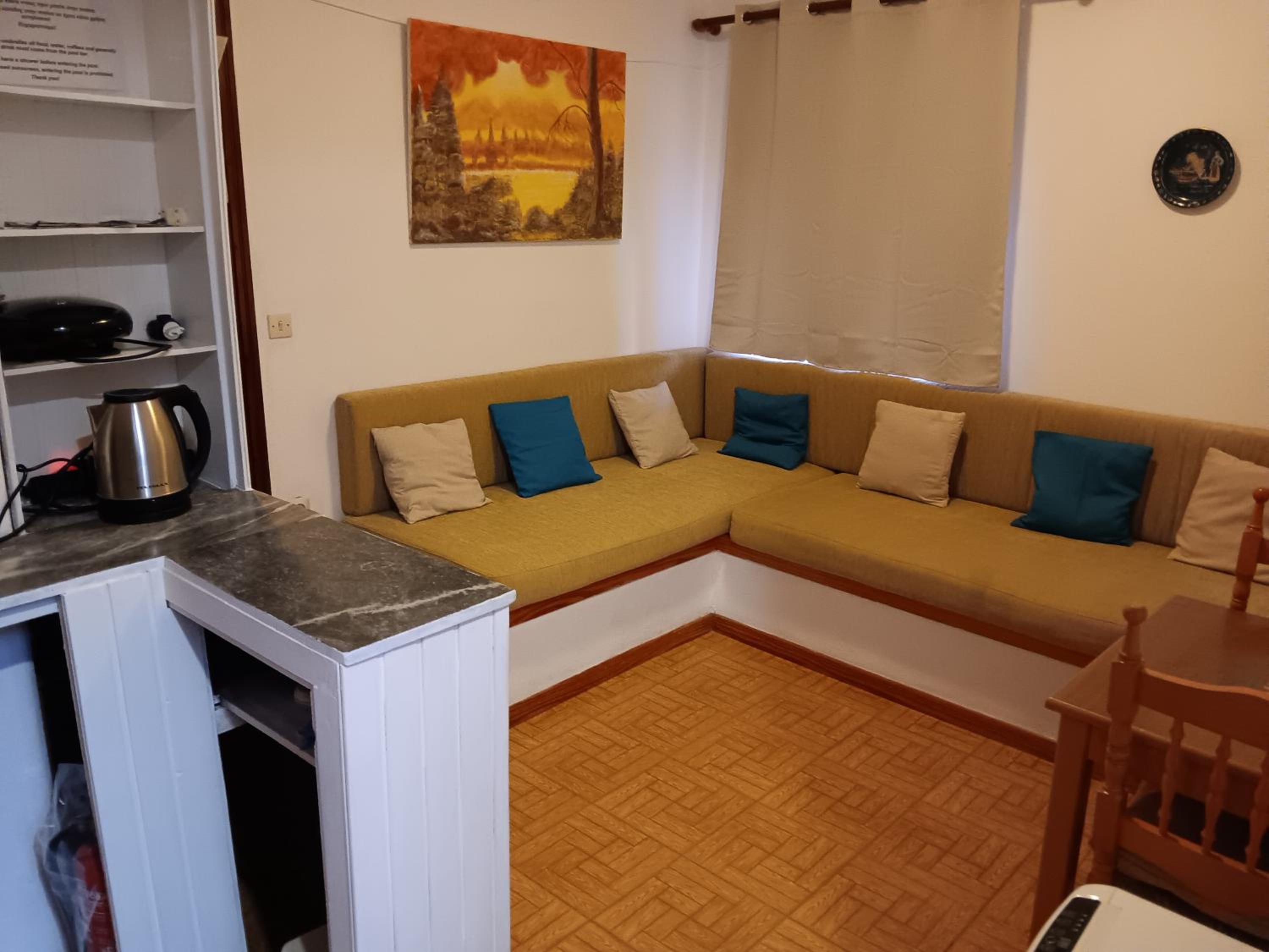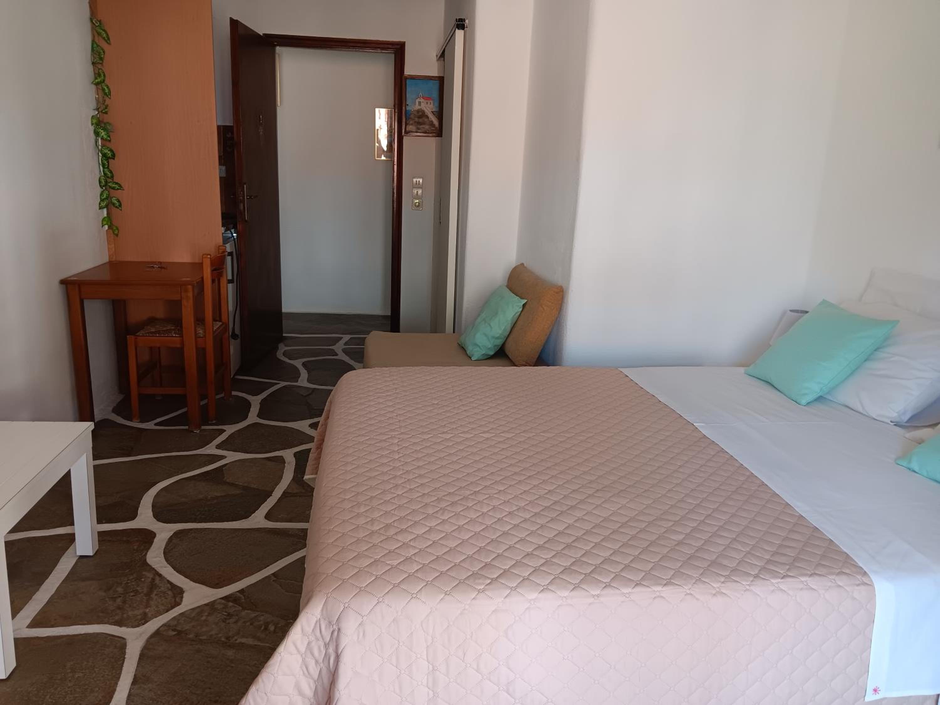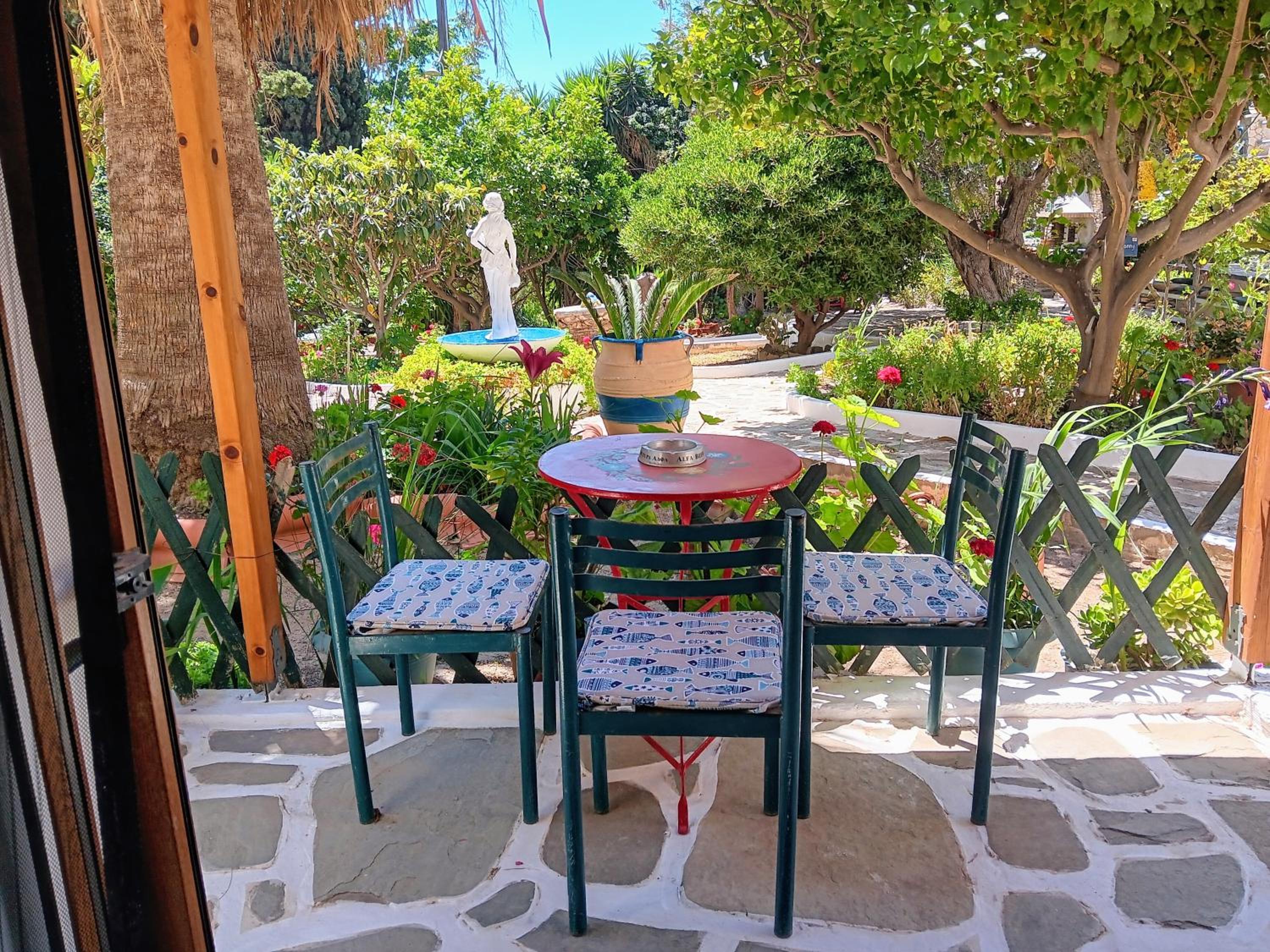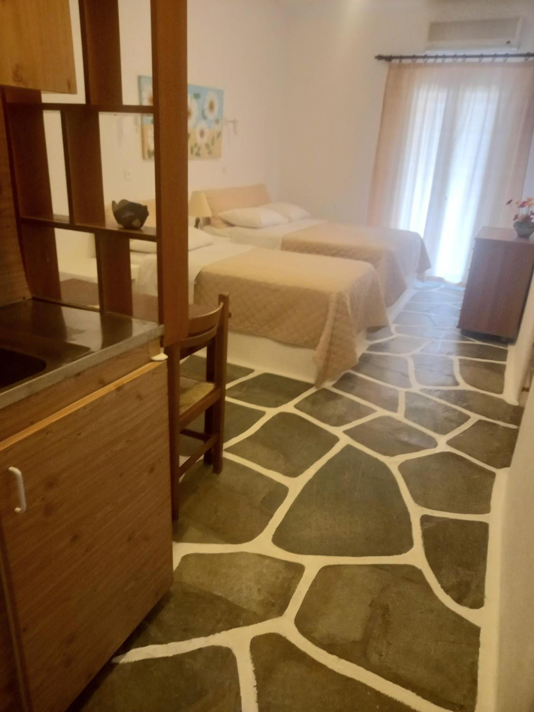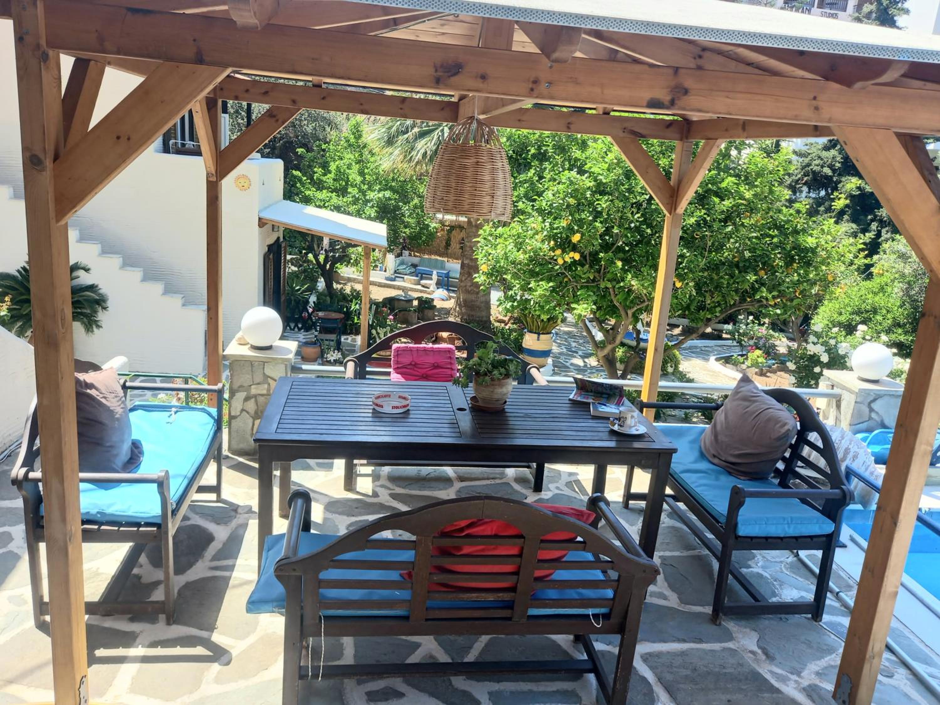 Villa Rena is a home away from home. This beautiful hotel in blue and white feel like a tiny greek village, with garden, flowers and a big lovely pool. Our studio had two nice rooms and three (1) balconies, one with wonderful seaview and one with pool view. Best of all is the hotel owner Rena. This lovely, generous, happy and warm lady does everything to make you feel comfortable. I can give this hotel my very best recommendations. Our seven year old grandchild had the best time of her life :-)