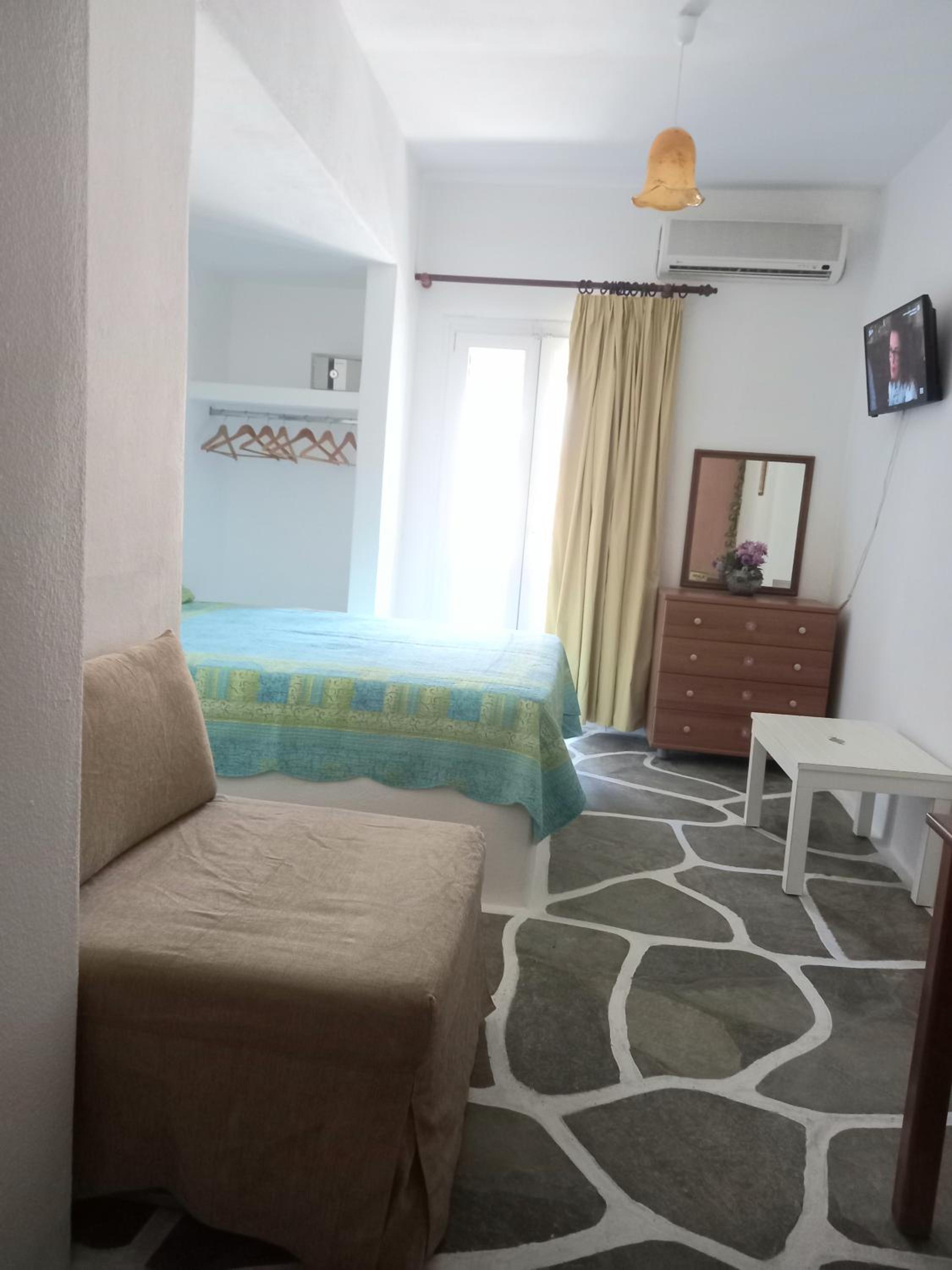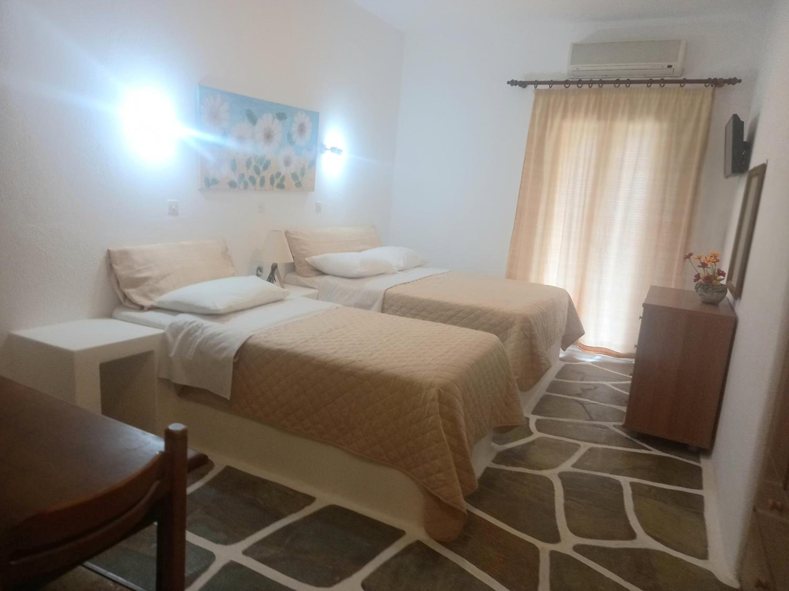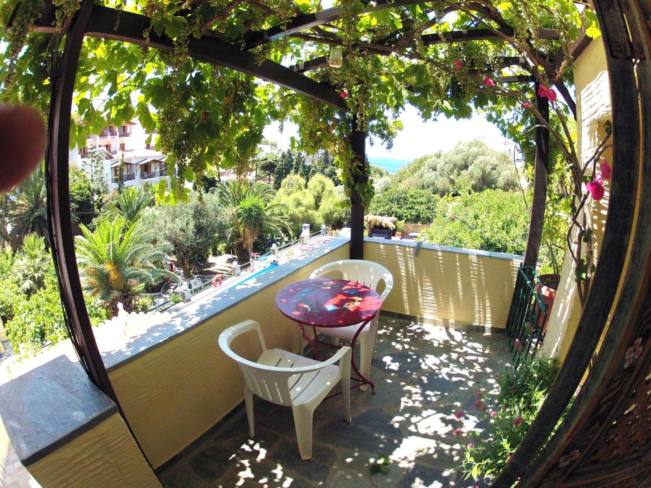 Perched above the bay of Batsi, Villa Rena offers breathtaking views of the Aegean Sea from the comfort of your own balcony. The air-conditioned studios and apartments provide a cozy retreat with modern amenities including a kitchenette, TV, and safety box.