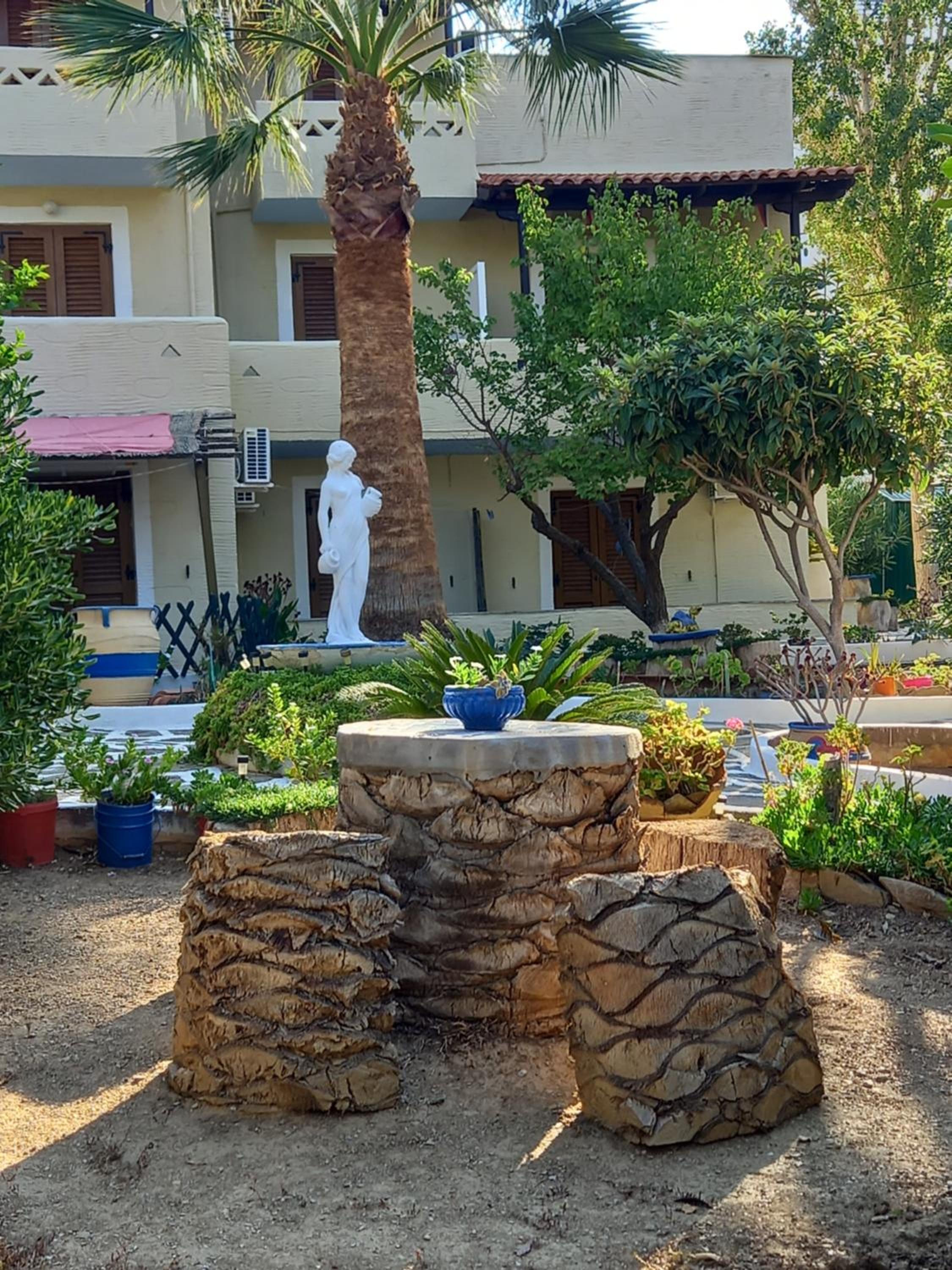 Upea vehreä luonnollinen hyvin hoidettu iso puutarha. Uima-allas oli varaamiseen syy se täytti odotukset. Puutarhan poikki alkoi polku alas rantaan jossa paljon palveluita, esim. ravintolat baarit leipomo kaupat apteekki autovuokraamo ja lippu myymälä.