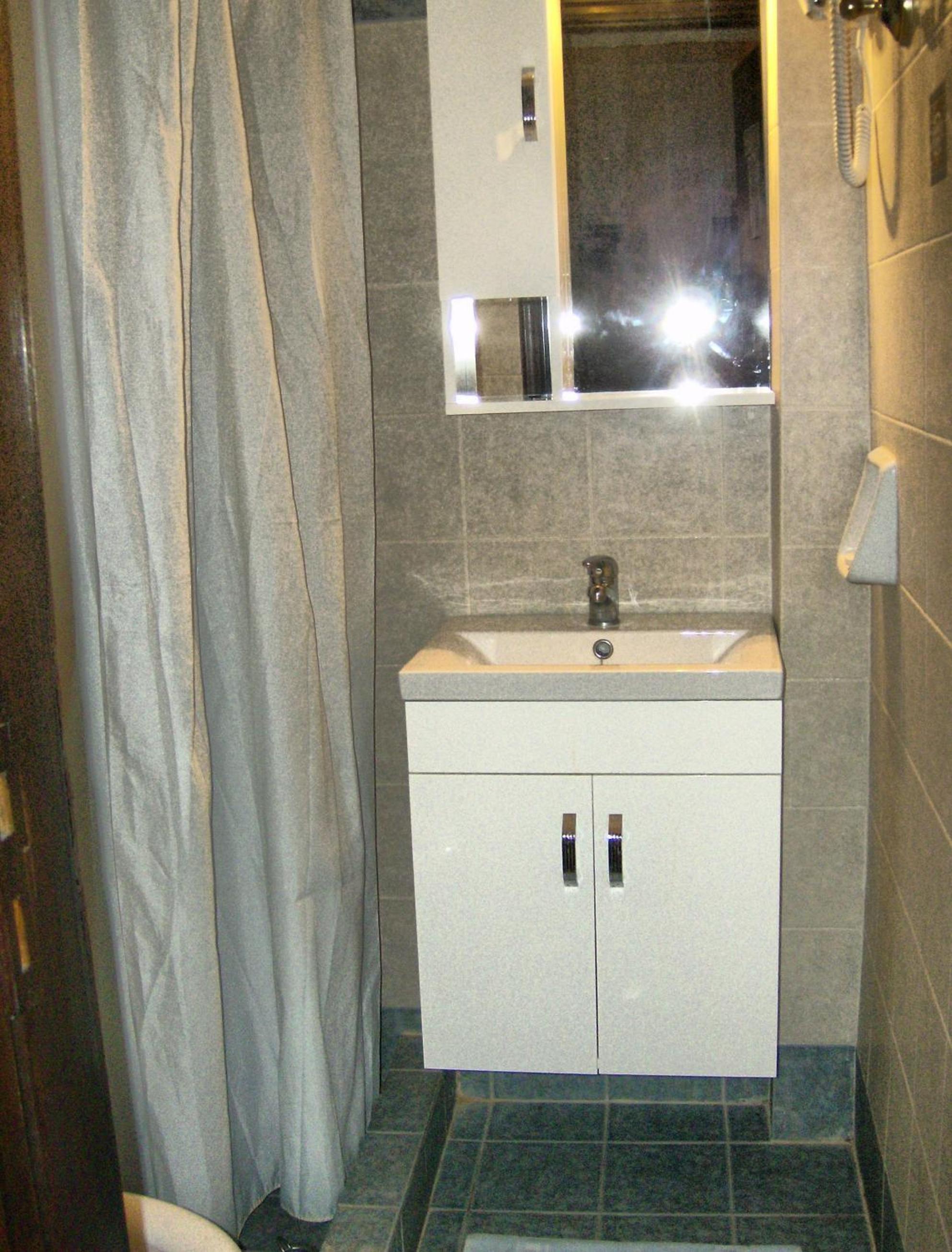 Salle de bain minuscule pas comode du tout douche rideau des annees 20 chambre agréable la patrone est sypat