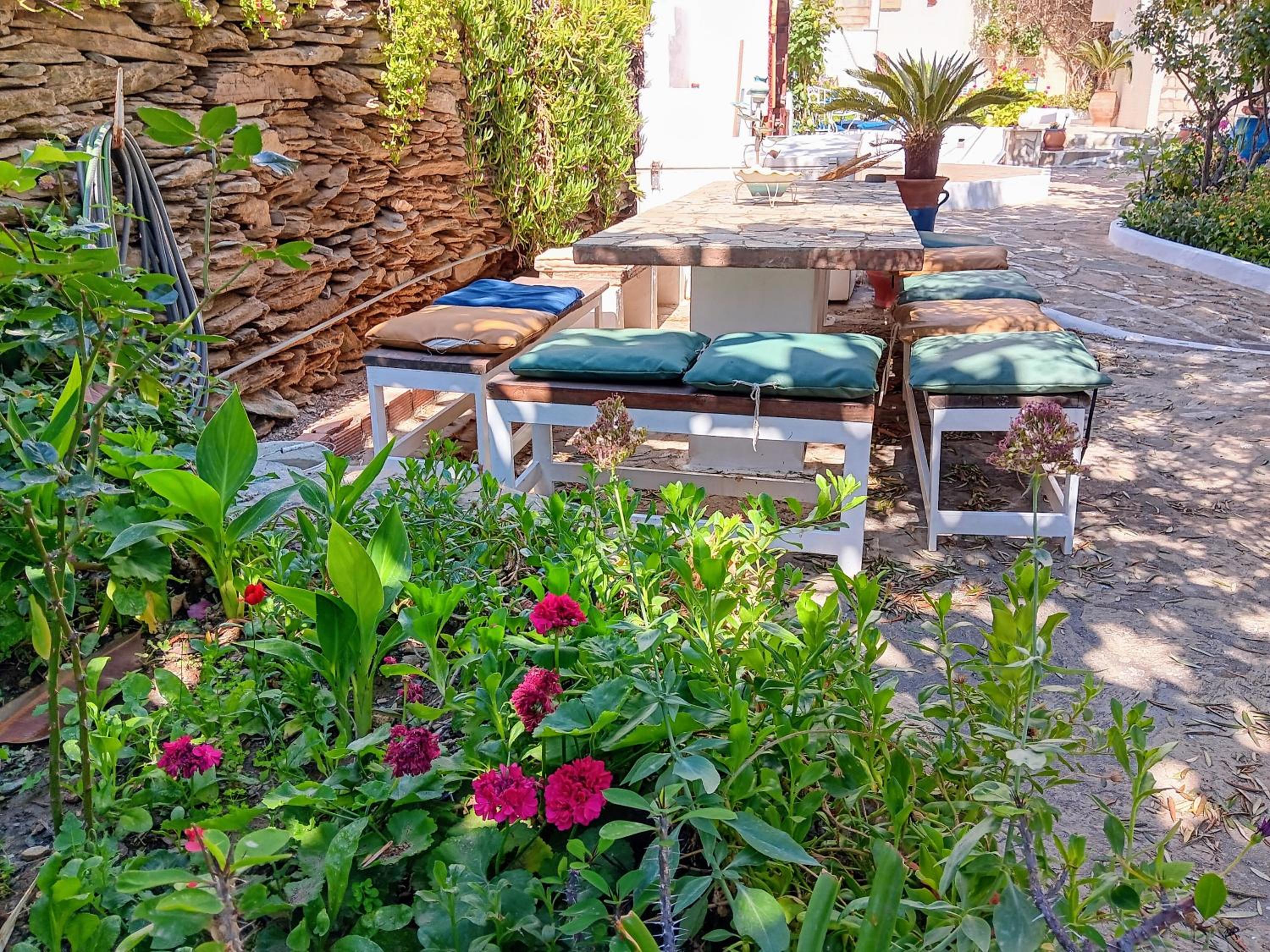 Great location, steps from the village but quiet location. Beautiful garden and nice pool area.