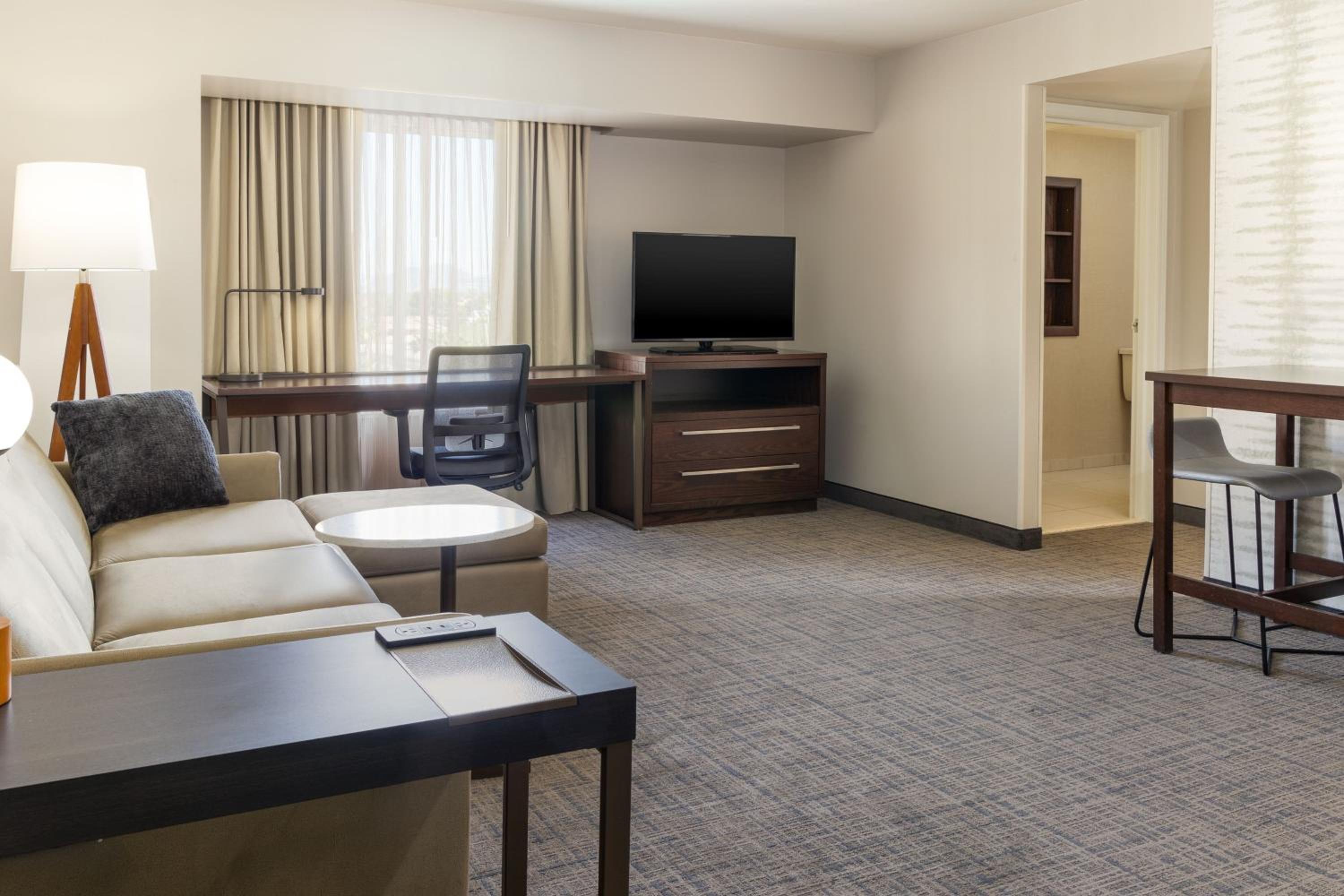 Luxurious Accommodation: Experience pet-friendly accommodations with free WiFi at Residence Inn by Marriott Las Vegas Airport. Each room features a flat-screen TV and a private bathroom with complimentary toiletries.