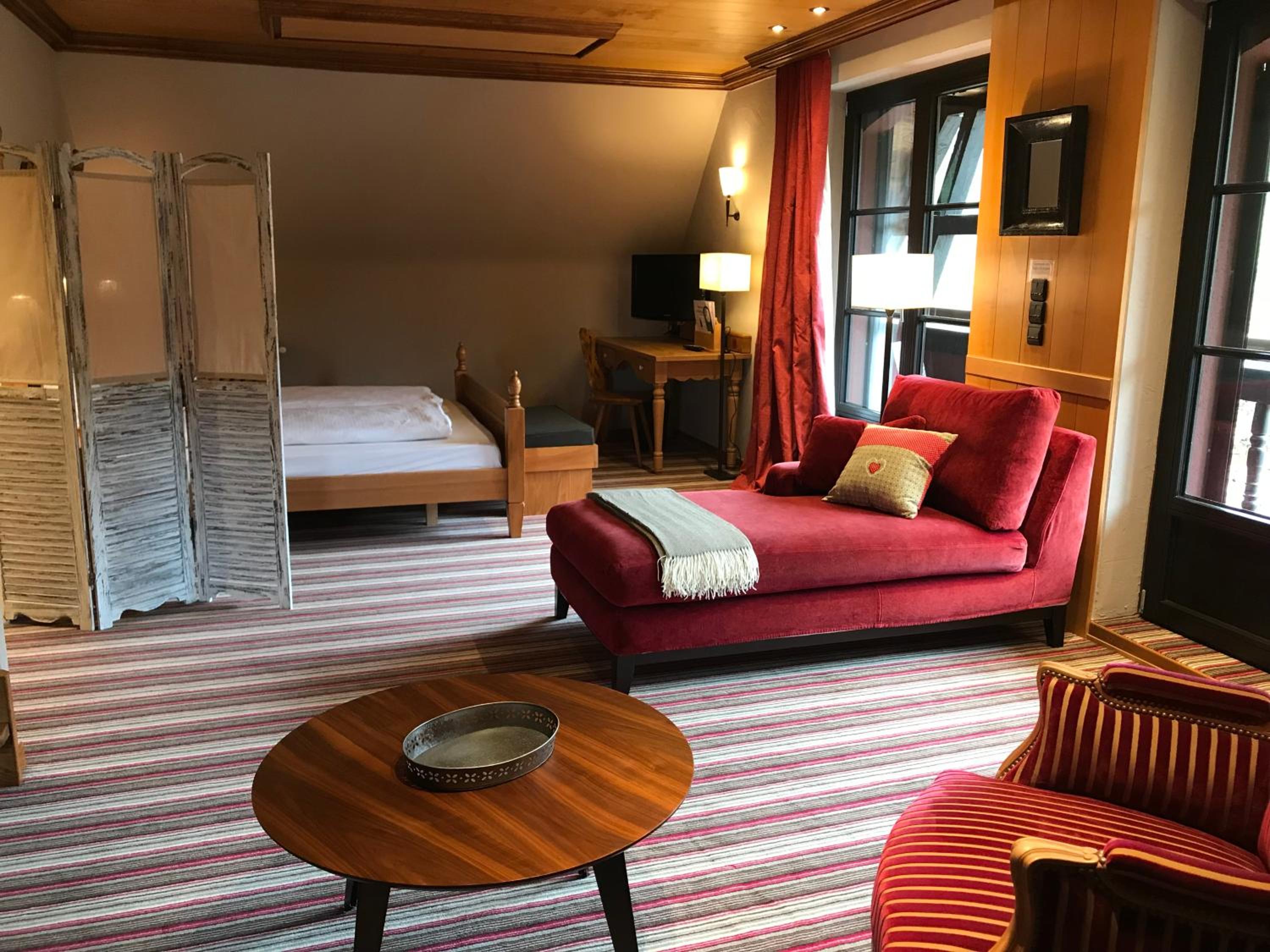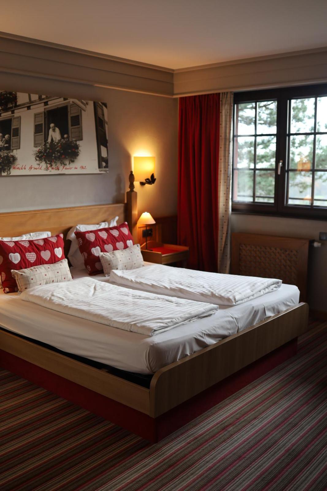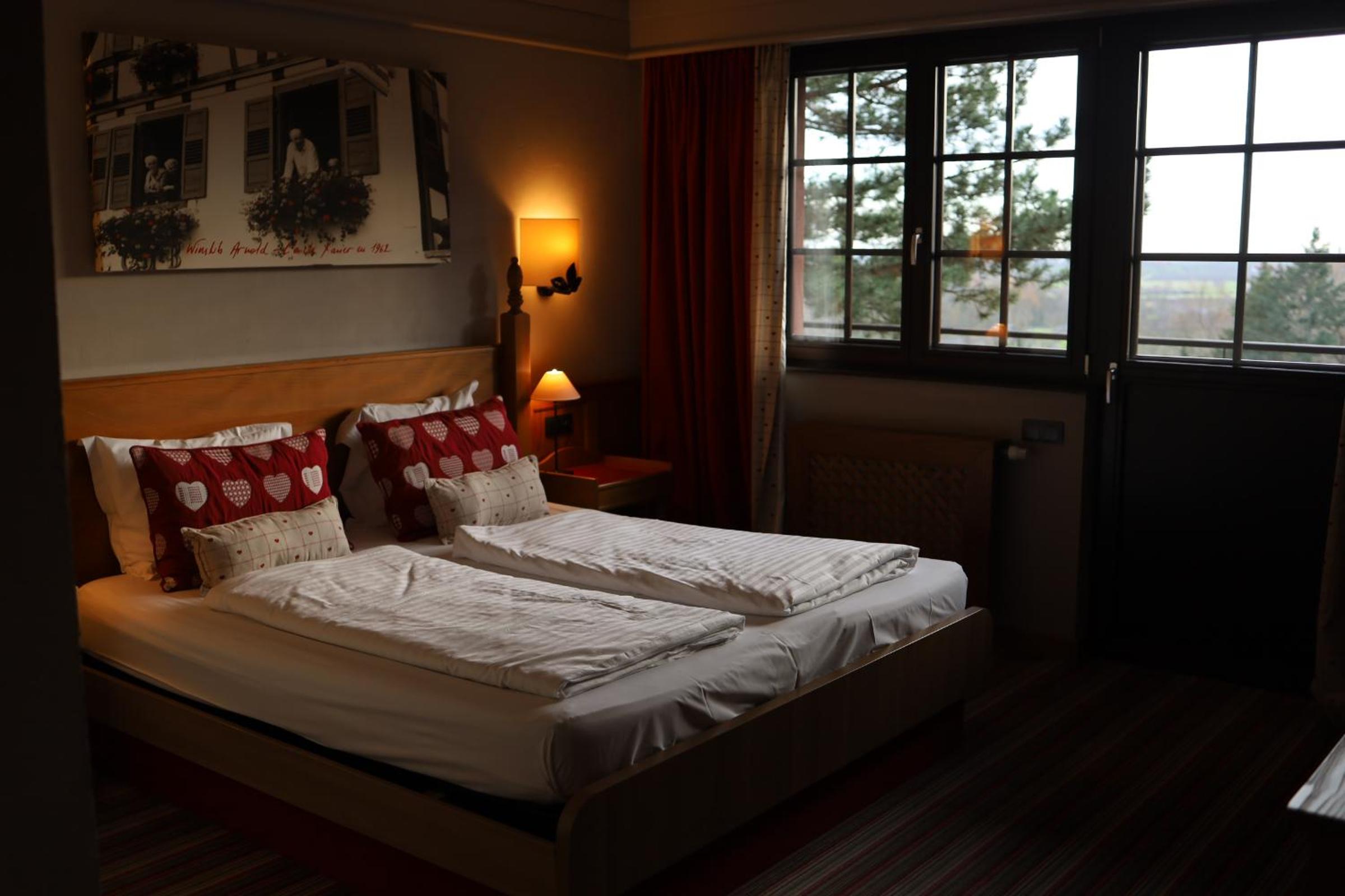 Guest rooms at Hotel Arnold are well-equipped with TVs and some feature a balcony or terrace, providing a cozy and relaxing stay for guests.