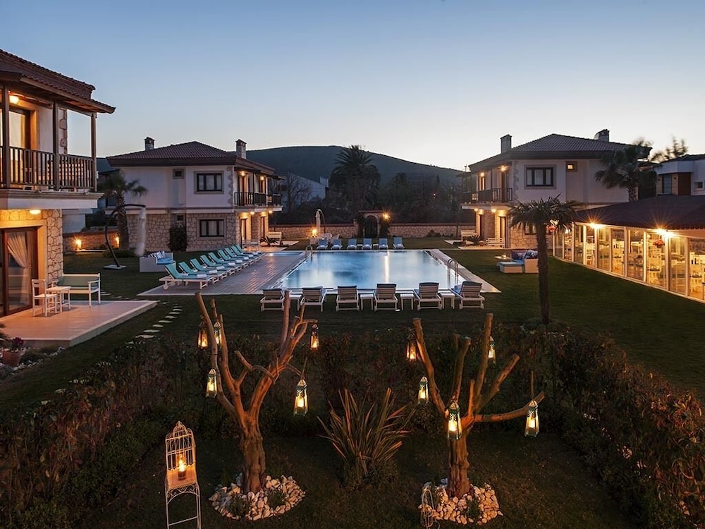 Ganz hübsches Hotel in zentraler Lage mit einem großen und sehr gepflegten Garten, Pool und schneller Internetverbindung. Im Oktober war das Restaurant abends leider zu, das regionale Frühstück war aber gut und ausreichend. Der Hotelbesitzer kümmert sich gerne um all seine Gäste persönlich. Die Suits sind alle 35qm groß und haben eigene Terassen vorne und hinten. Bis auf die unglaublich schlimme Kalkablagerungen im Bad war alles gut geflegt. Ich konnte mit meinem kleinen Hund ganz bequem zu Fuß, aber auch mit dem Dolmus nach Ilica und Alacati gehen. Alaçatı ist übrigens sehr zu empfehlen, ist eine kleine, schicke und lebendige Ortschaft mit ihrer ganz berühmten Nachtleben, ist aber sehr interessant besonders für Surfer und Windsurfer.