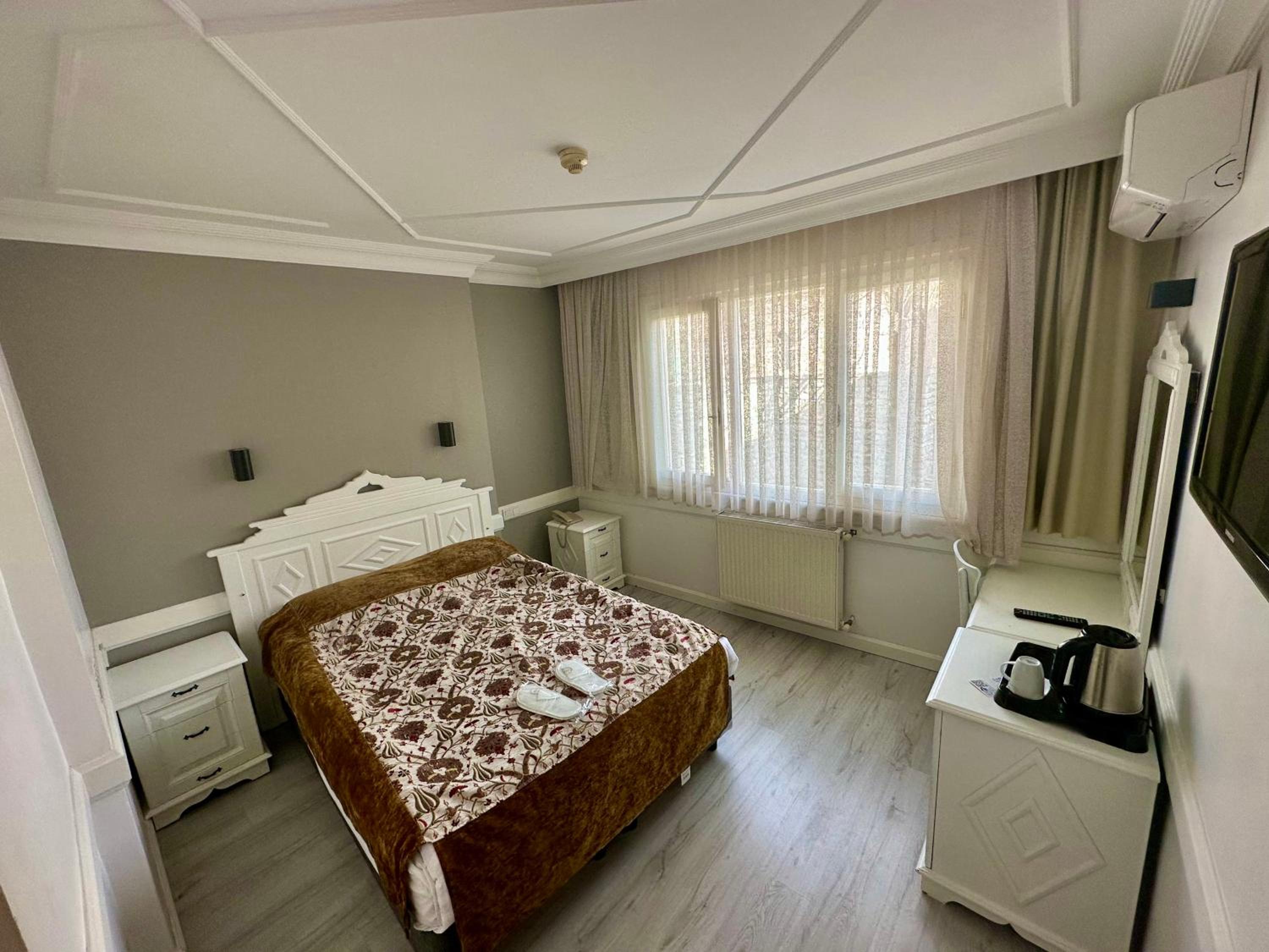Immerse yourself in the rich history of the Ottoman Empire with the hotel's décor featuring vintage four-poster beds and modern amenities. The blend of traditional and contemporary elements creates a cozy and inviting atmosphere for guests to relax in style.
