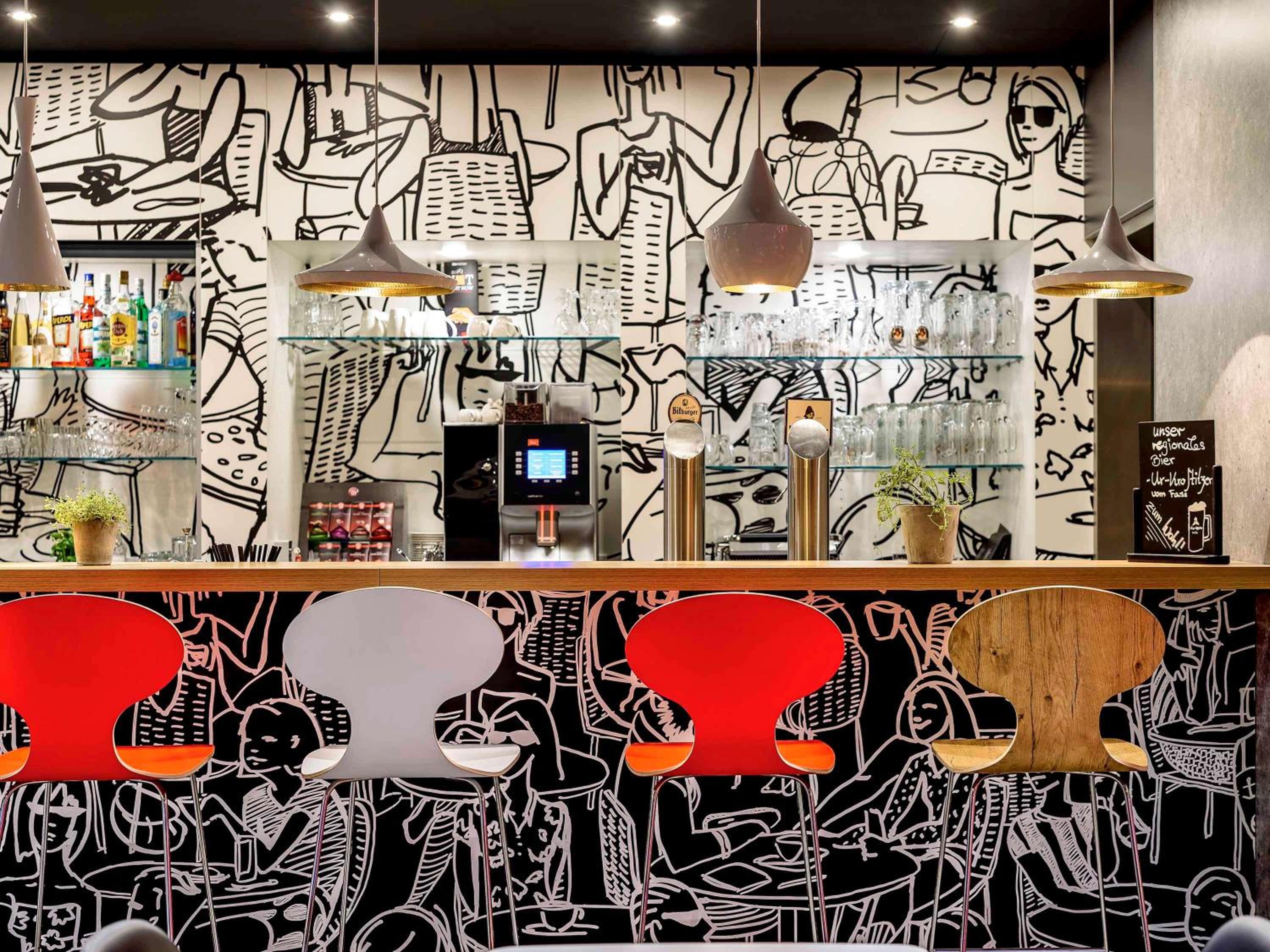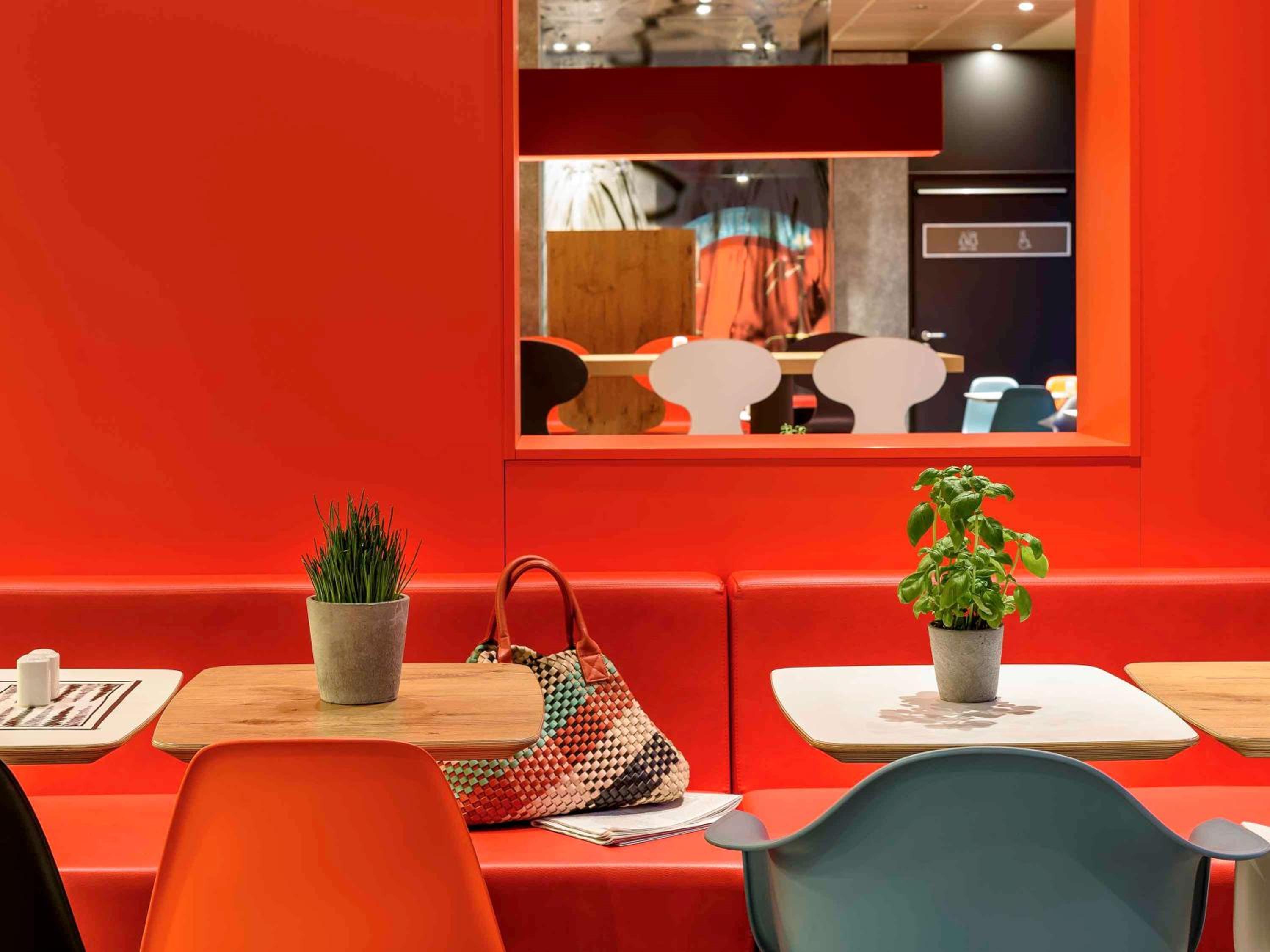 Public areas on the ground floor have two soft seating areas and two public PCs. There is a bar and an adjacent breakfast room where light meals are served all day. Breakfast was plentiful and of high quality, but perhaps not as comprehensive as we have experienced at other ibis in Germany. There were hot items (eggs - scrambled and boiled - and bacon) but toast was not available. There were no pastries or cake!! The snack menu was limited to Panini, one salad and desert, but there are plenty of restaurants nearby (including breakfast places open at 06:30) if needs be.