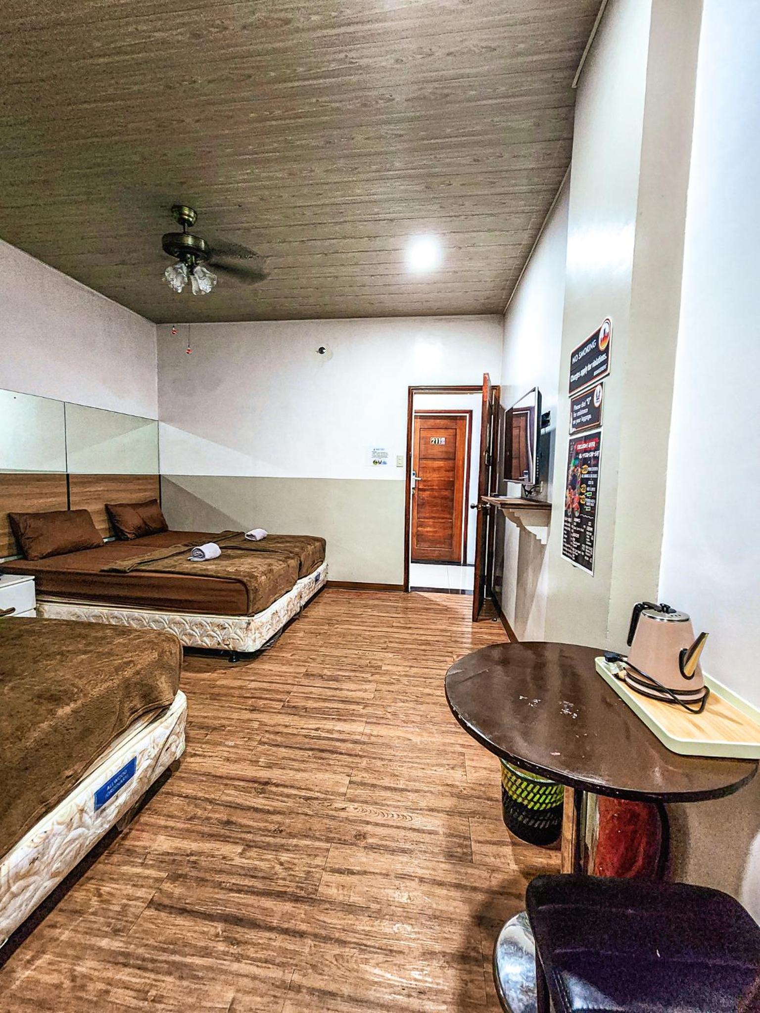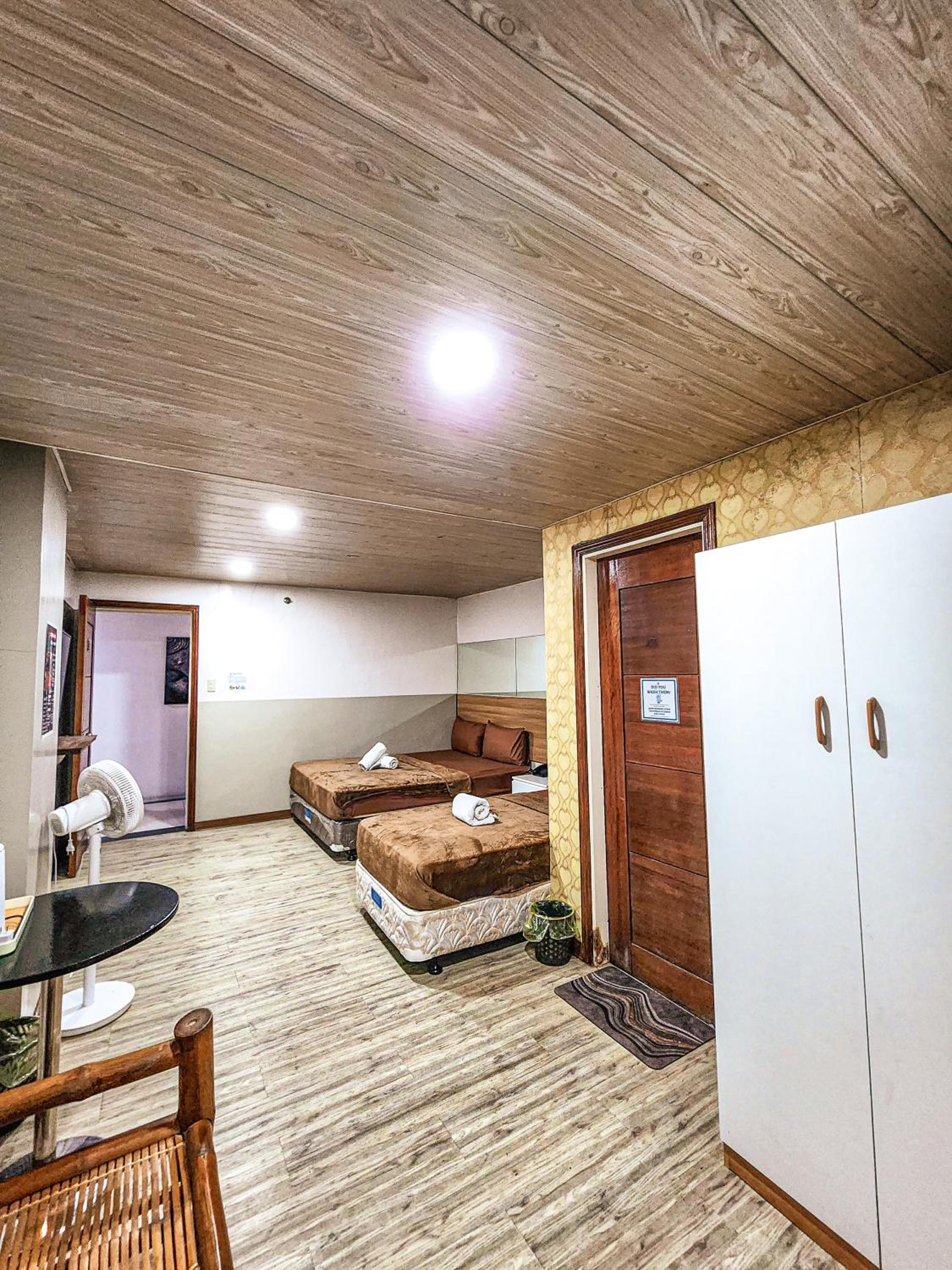 No avaible kettle as described. the blanket is so small and they don’t provide any extra on request. The room and CR has bad smell. Provided Towels are like Rugs (too old and fabric flupps up). We stayed for 4 days and not even once they clean our room nor change our towels.
