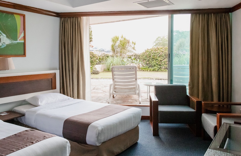 Enjoyable staycation due to the quiet environment, deluxe room with terrace to garden, sea breeze and restaurants.