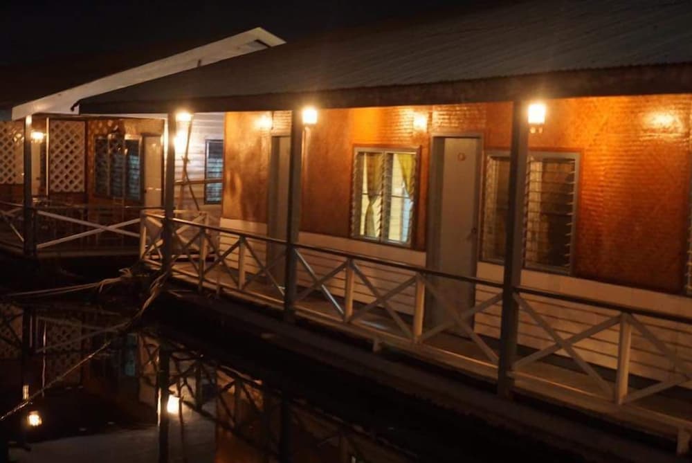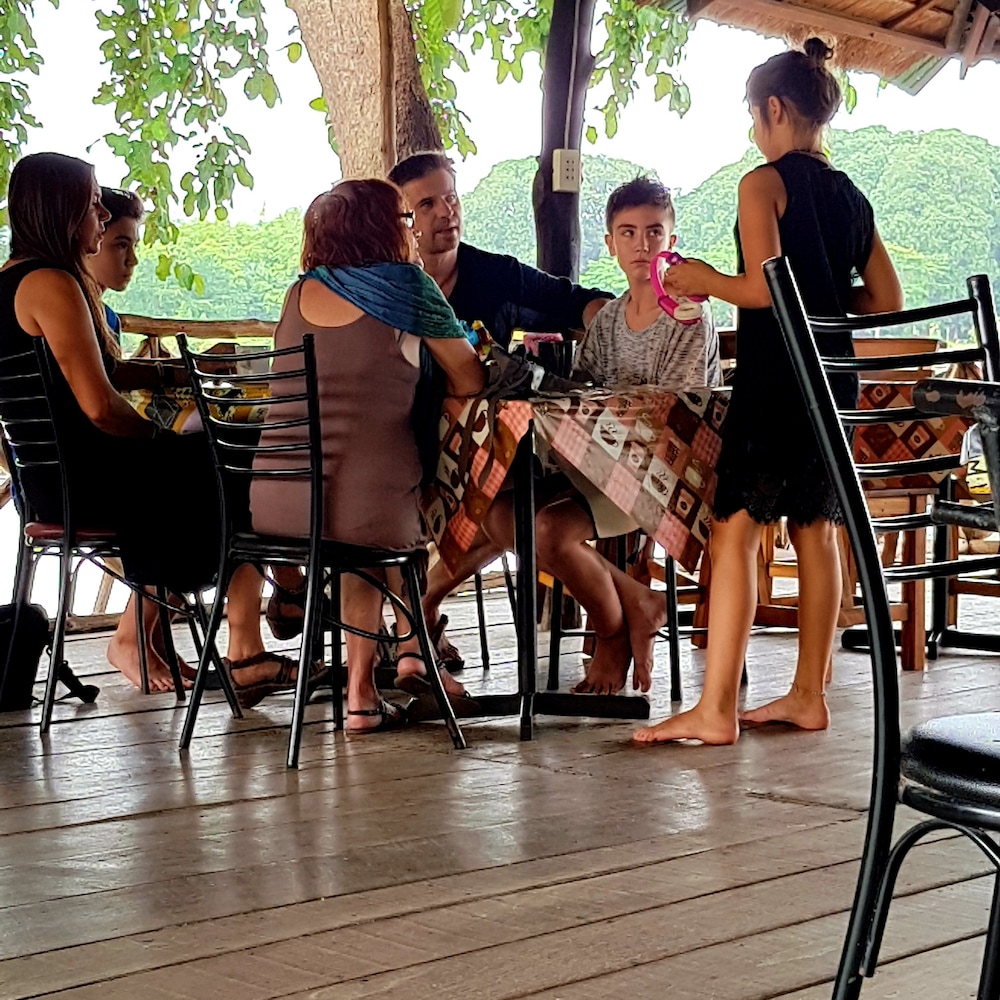 Bungalows flottants sur la rivière et agréable restaurant donnant sur l ' eau.