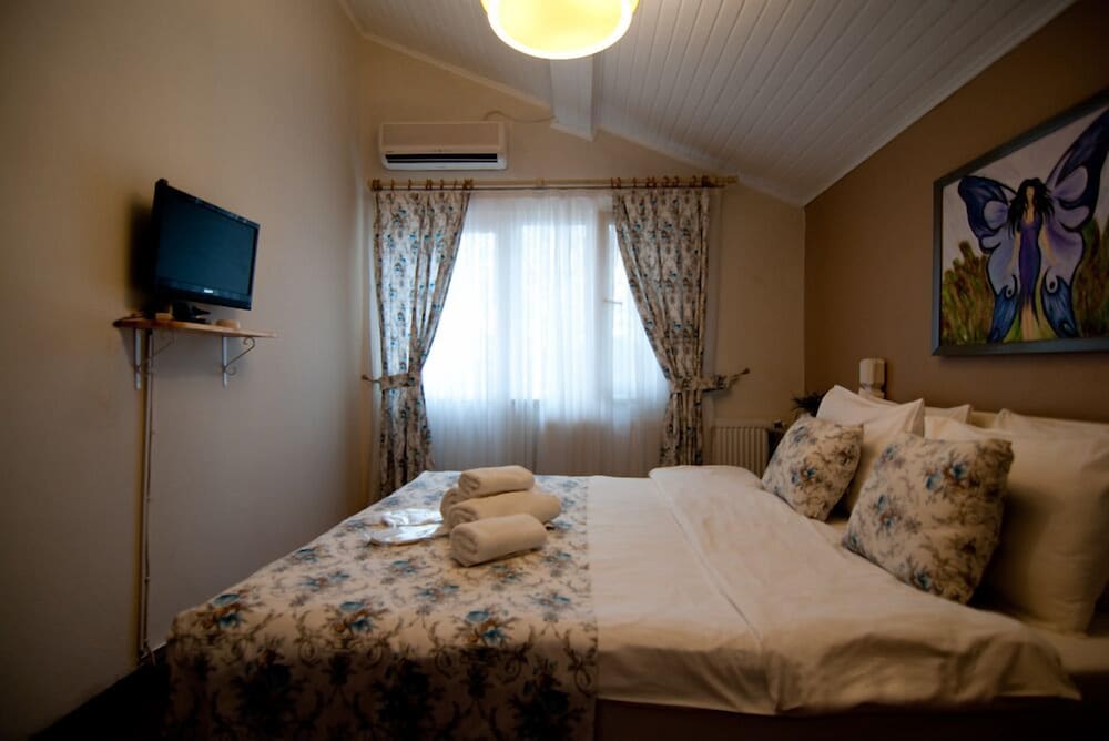 Standart oda aldık. Oda temiz ve yatak rahattı. Odanın darlığına büyük bir şömine orantısız olmuş bence. Deniz bisikleti ile nehirde dolaşmak gayet keyif verici. Ve ücretsiz. Akşam yemeği çok iyi pişmiş antikor ve balık söyledik tam kıvamındaydı. Kılçıkları otelin kadrolu kedisine verebilirsiniz ; ) (zaten isteseniz de istemesenizde yanınıza geliyor ) küçük bir bahçesi var çok şirin. Birde otel sahiplerinin kızı var bilin bakılım adı ne? Tabi ki PERİ :)) o da çok tatlı maşallah. Sabah kahvaltısı serpme geliyor ama yok yok doymadım diyeni döverler. .. biz bir gece haftasonu kaçamağı yaptık çok dinledik herkese tavsiye ederim. ..