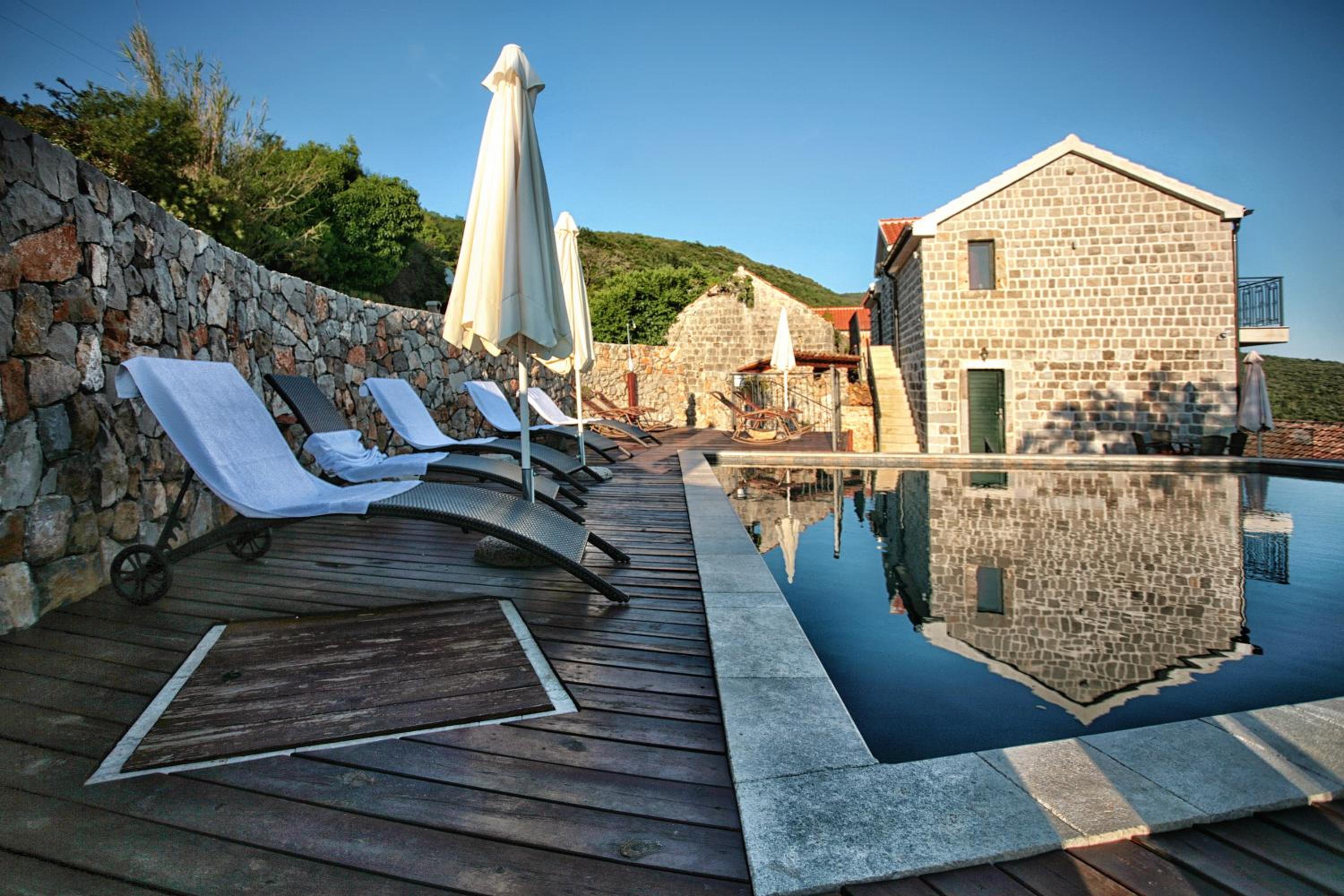 Escape to Klinci Village Resort for a tranquil getaway on the stunning Luštica Peninsula. Enjoy breathtaking views of the hills, pool, and sea from your private balcony.