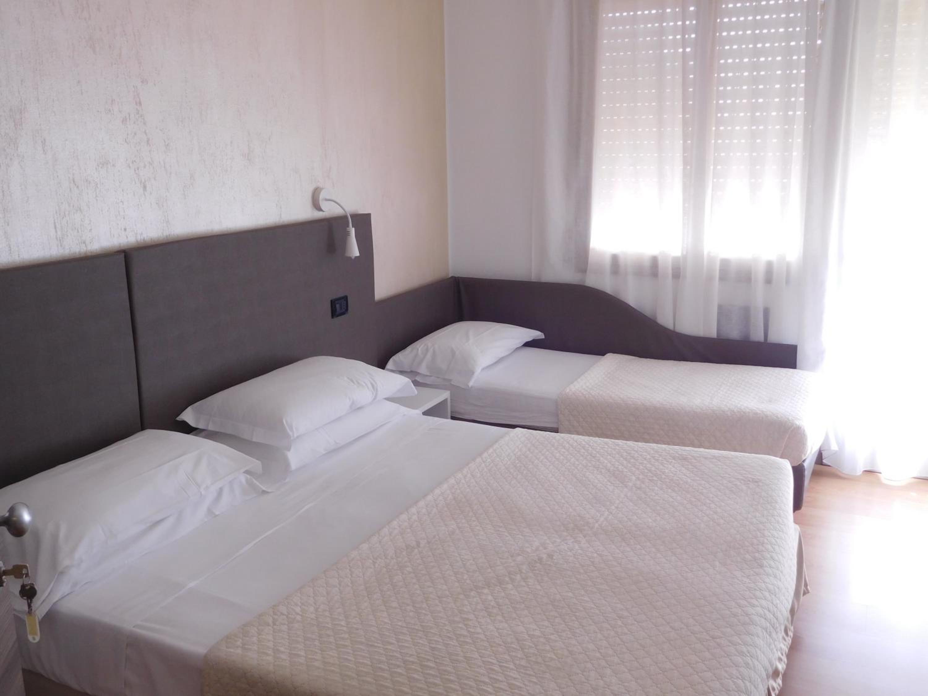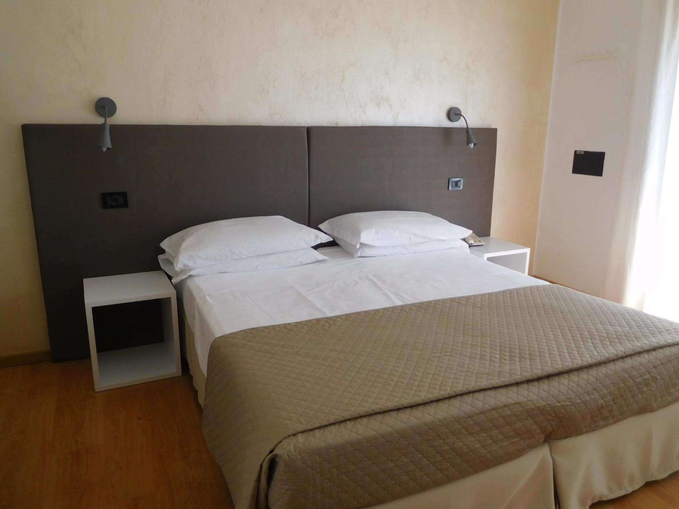 Hotel Emperador is a family-owned three star hotel located on the main long street of Lido di Jesolo. Right outside the hotel there are many restaurants, shops and entertainment places (arcade machines, trampolines) right next to the hotel or in a short walking distance. The car traffic in the main road is restricted from 20:00 and until morning, so it is a quiet area at night and safe for late evening walks with kids. The shallow sandy beach is about in a 3-5 minute walk from the hotel. The beach is filled with many rows of sun umbrella & 2 sunbeds' sets and hotel has their own row which they reserve for its guests for free. You just ask for a sunbed set ticket at the reception before heading to the beach and at the beach you sometimes be asked by beach staff to show the ticket, sometimes not. Hotel has its own free spacious free parking lot in the backyard. The breakfast is good: enough variety of healthy warm and cold food, many sweets. The interior is oldish yet fully functional and clean. The main pro is staff: the married couple are the owners and they treat their clients with respect, kindness and in a professional way. Cleaning lady properly cleaned our room every day which was way beyond three star requirements. We expected less but got more and were fully satisfied with our stay at the Emperador.