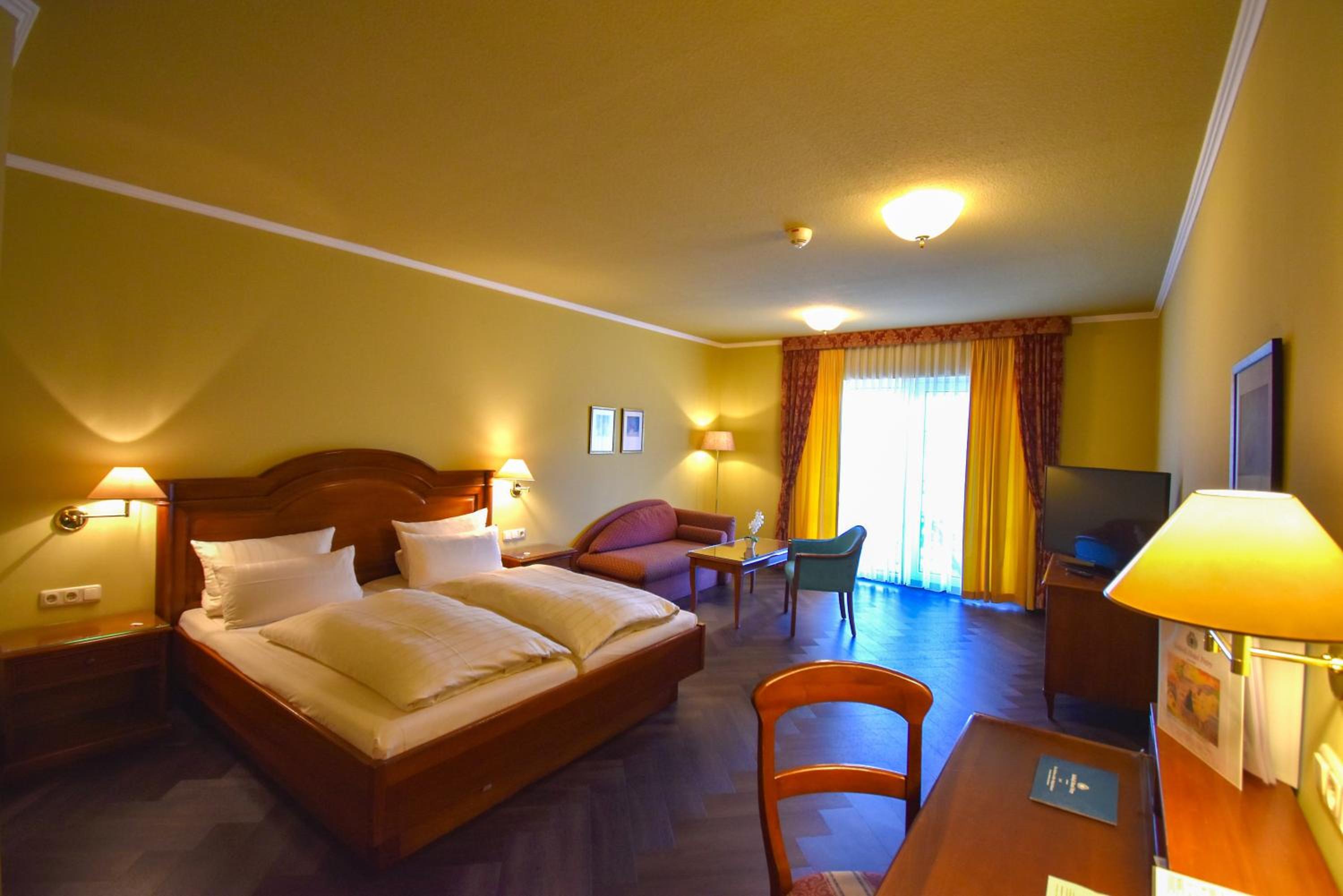 Fine Dining and Outdoor Terrace: Indulge in regional cuisine, international dishes, and fine wines at the Schloßstube restaurant or the cosy Weinstube tavern. In the summer, enjoy your meals on the outdoor terrace overlooking the picturesque surroundings.