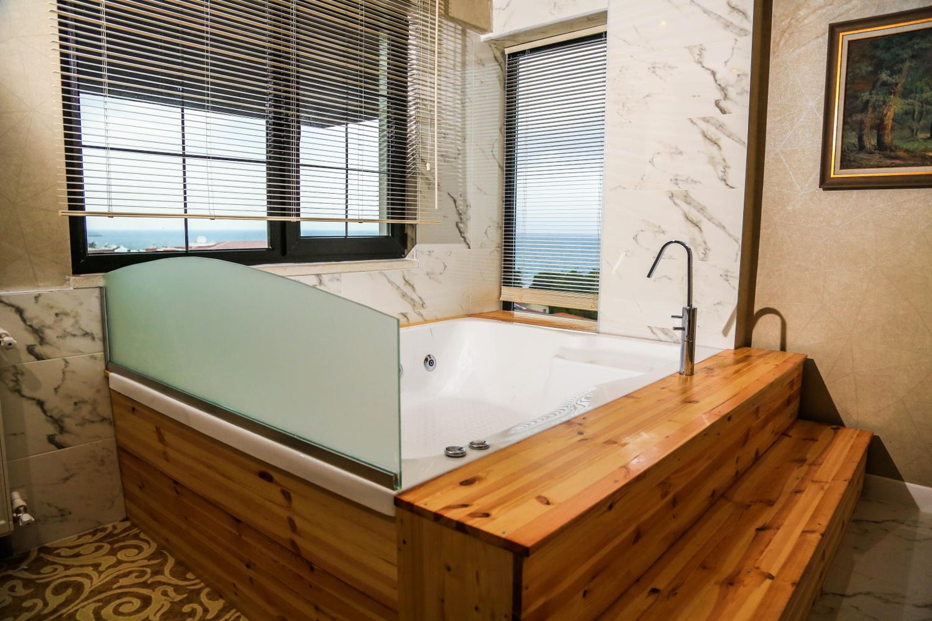 Odalar biraz eskimiş küvete gelen su yavaş doluyor. Jakuzinin temizliği vasat
